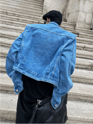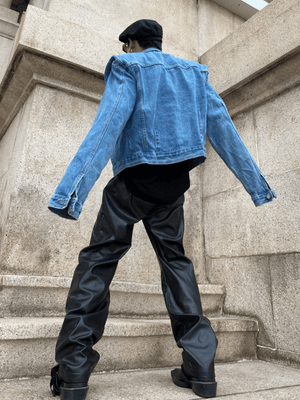 [ArguE CulturE] pleated design shoulder pad denim jacket st1645