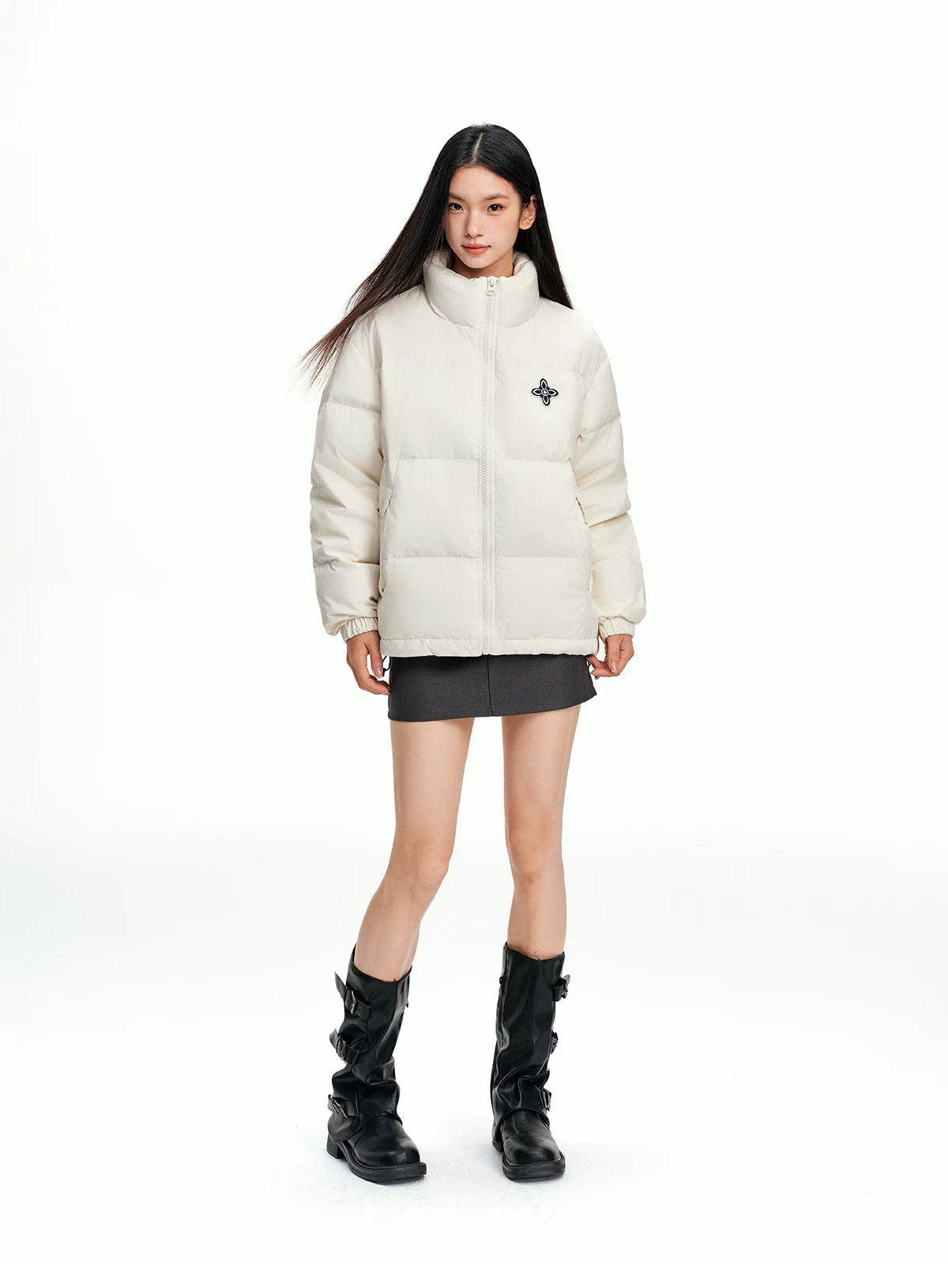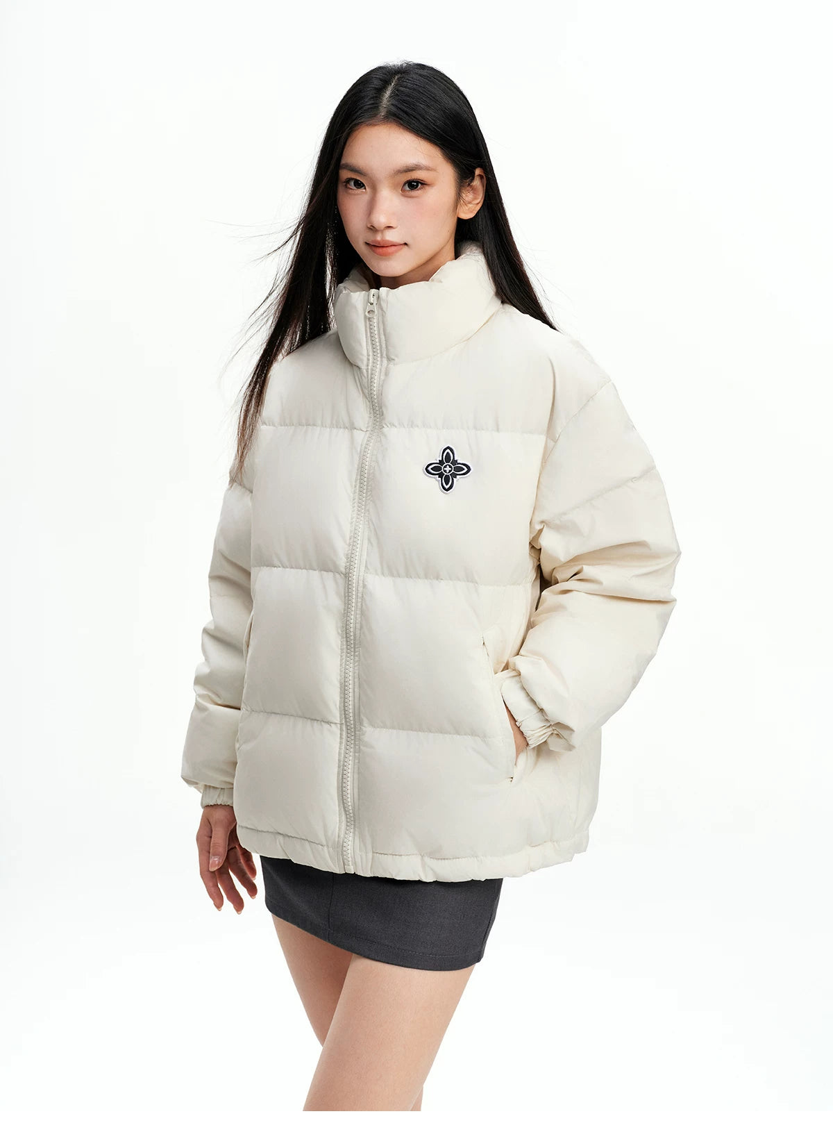 Cross-stitch embroidered logo 90% down puffer jacket SIN0846