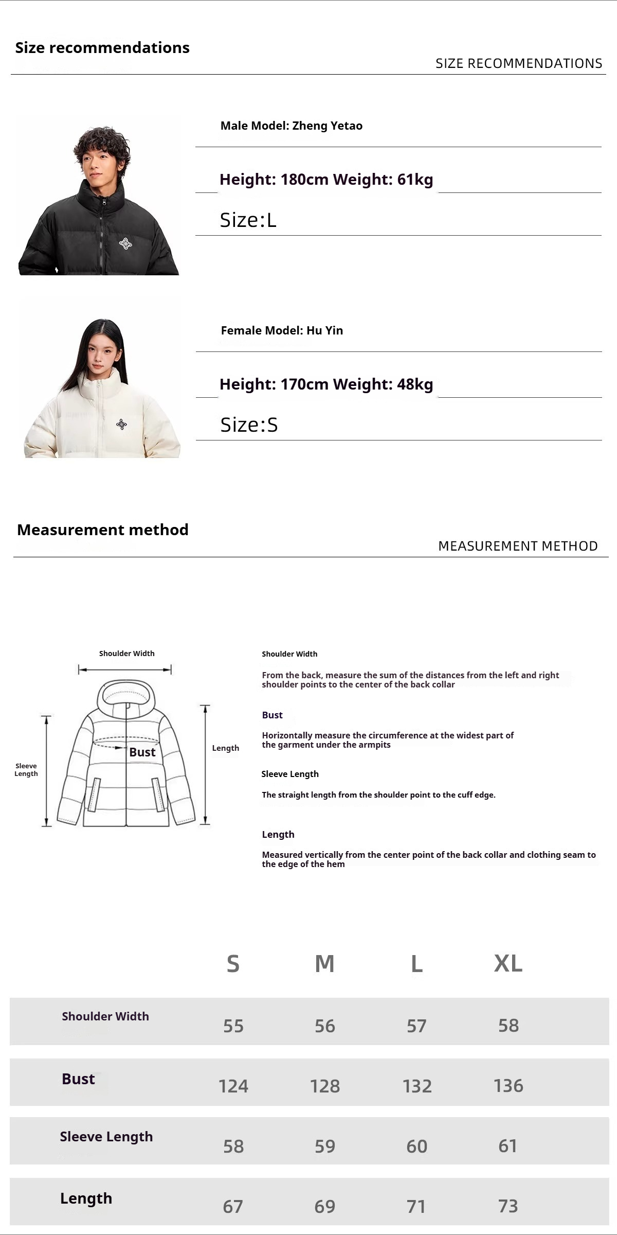S, M, L, XL |