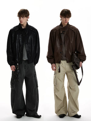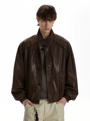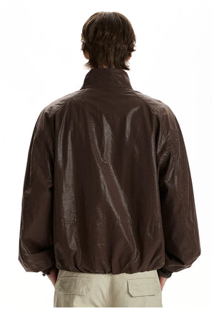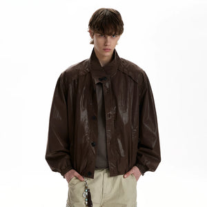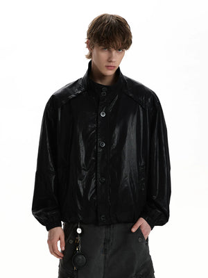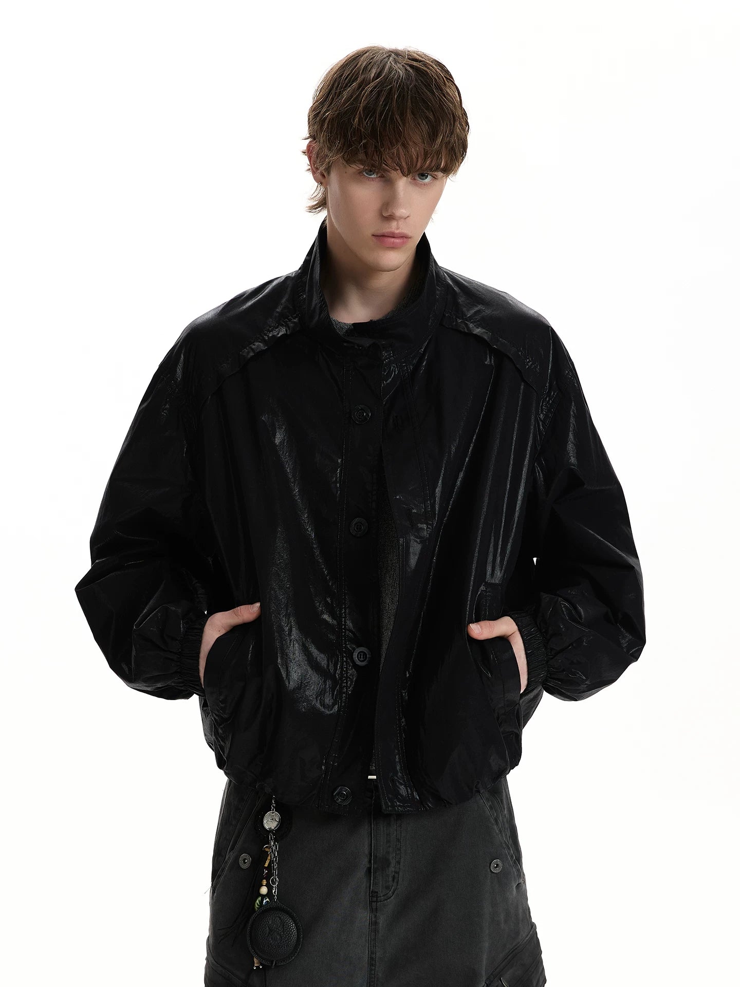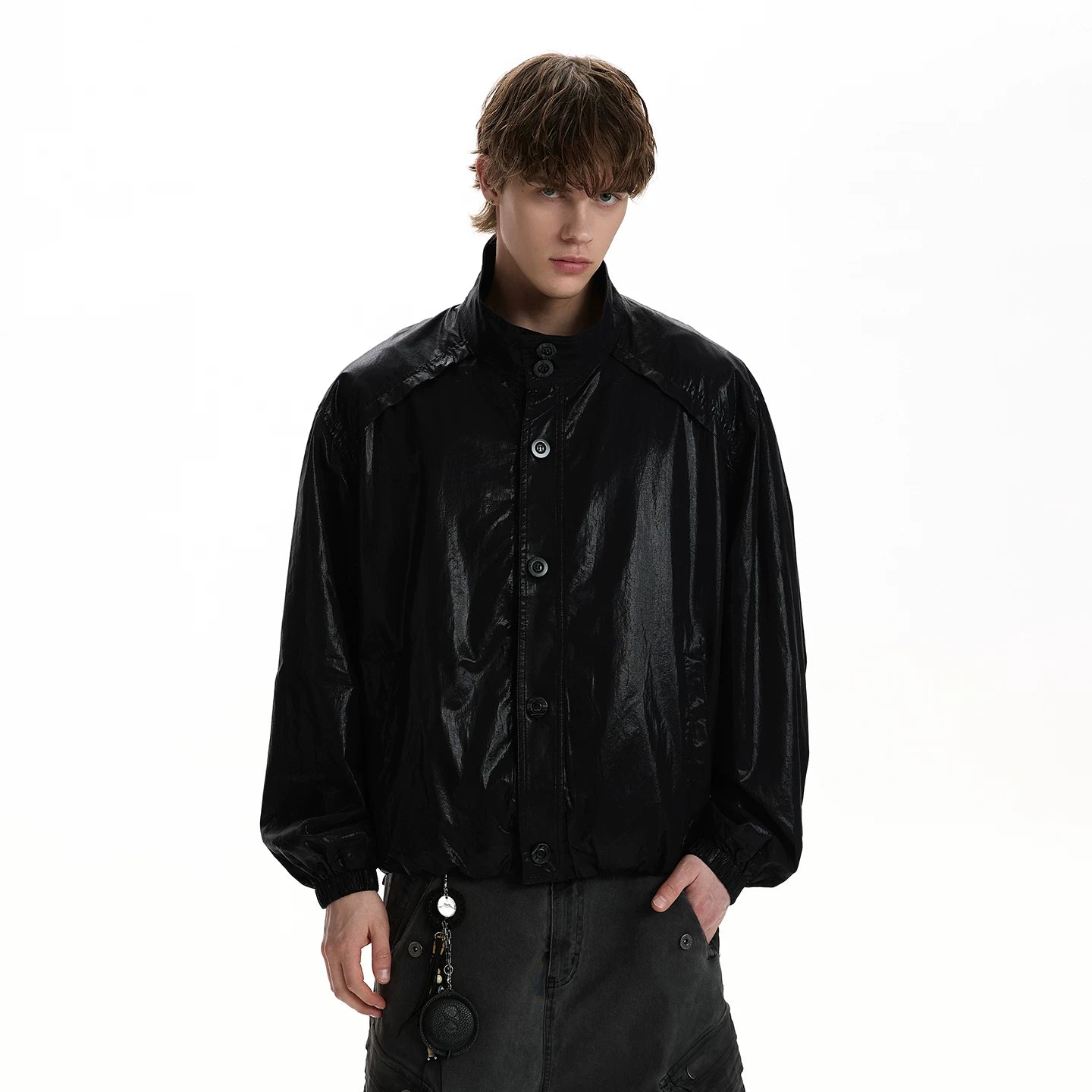 Glossy leather jacket men's short versatile stand-up collar jacket WY048