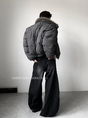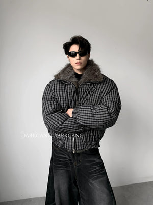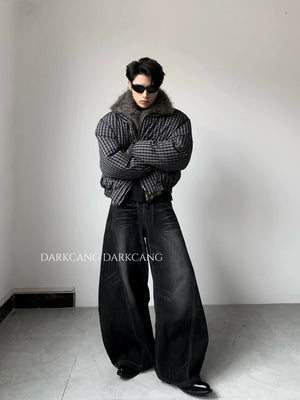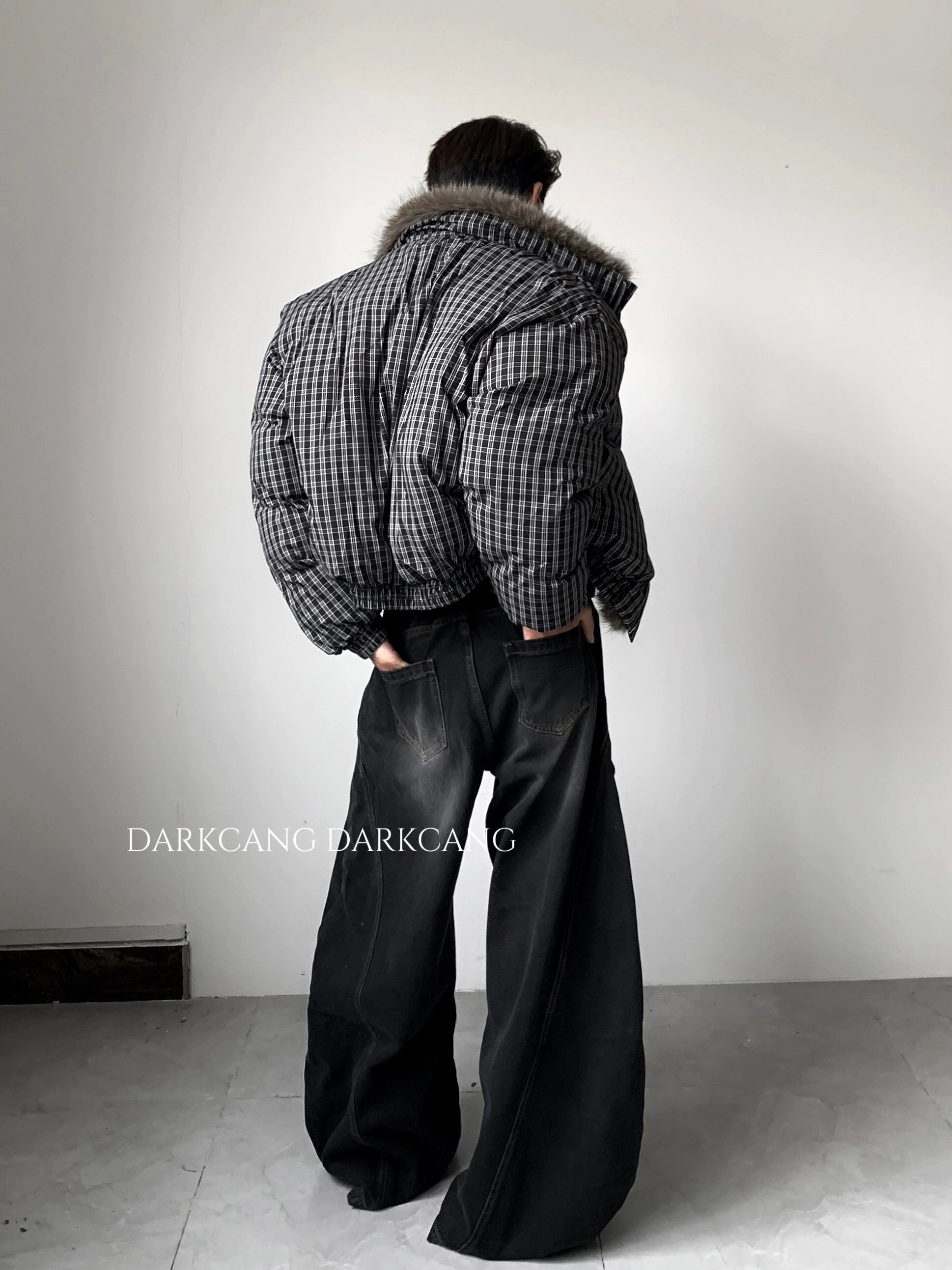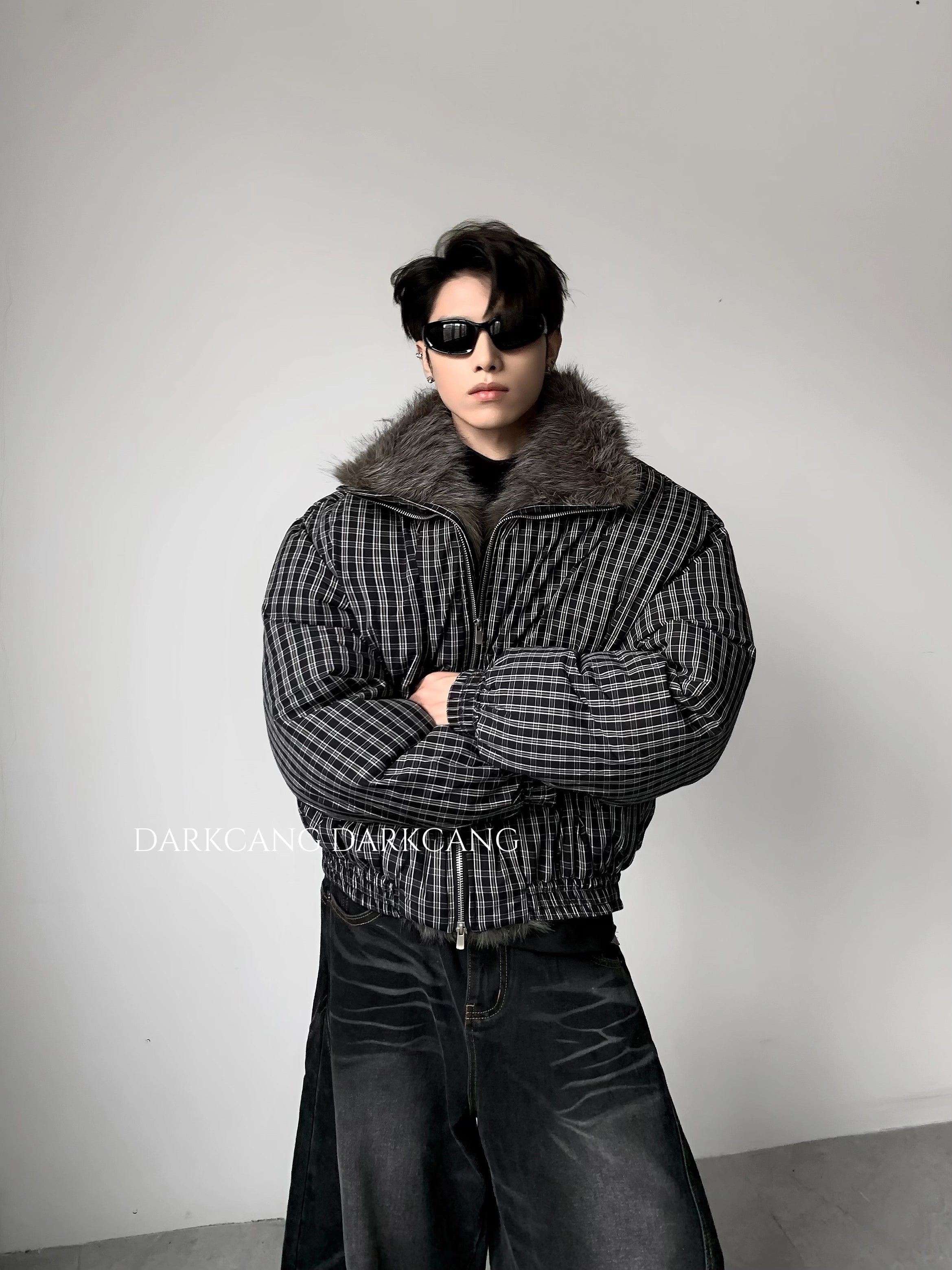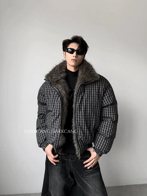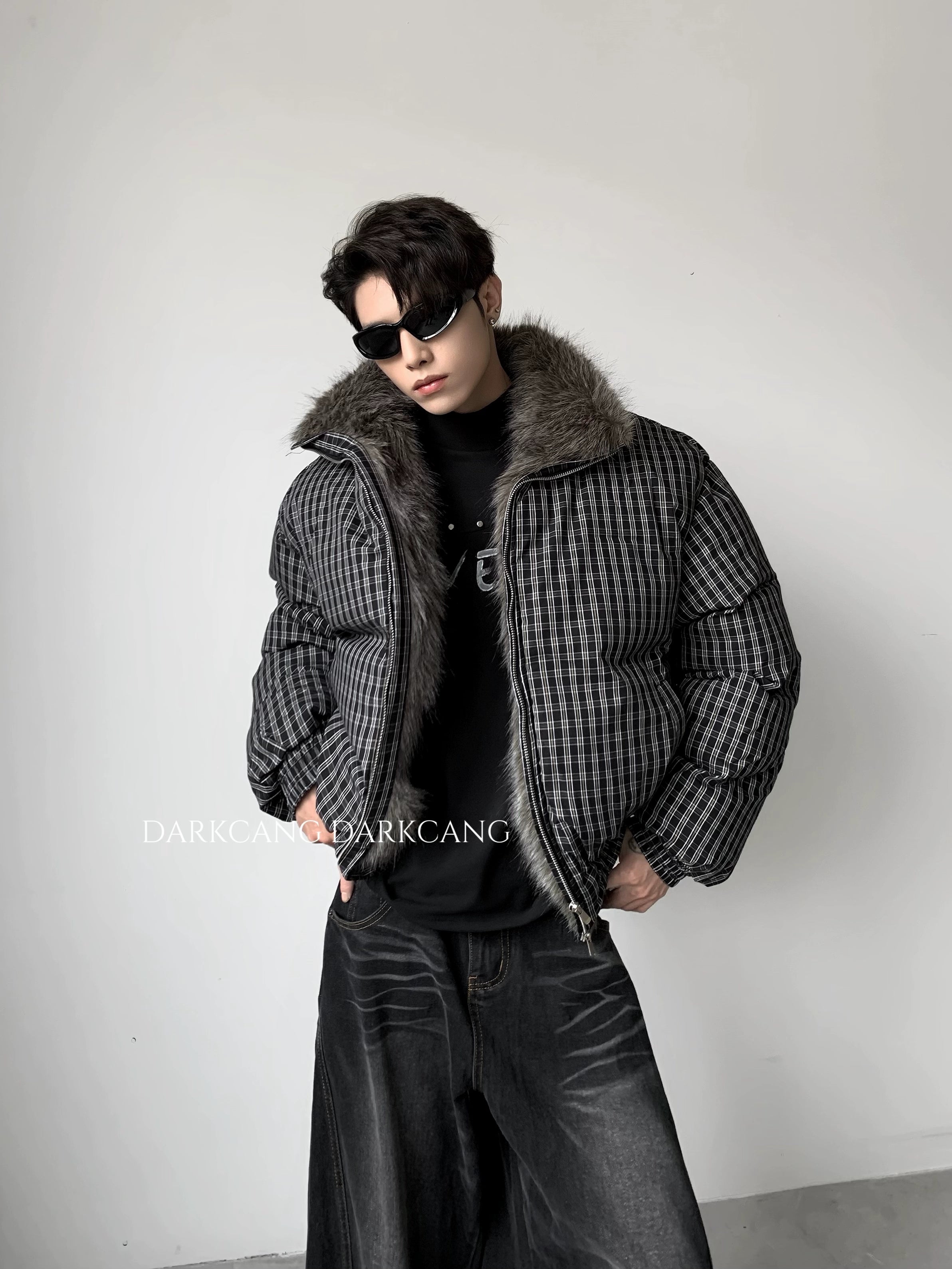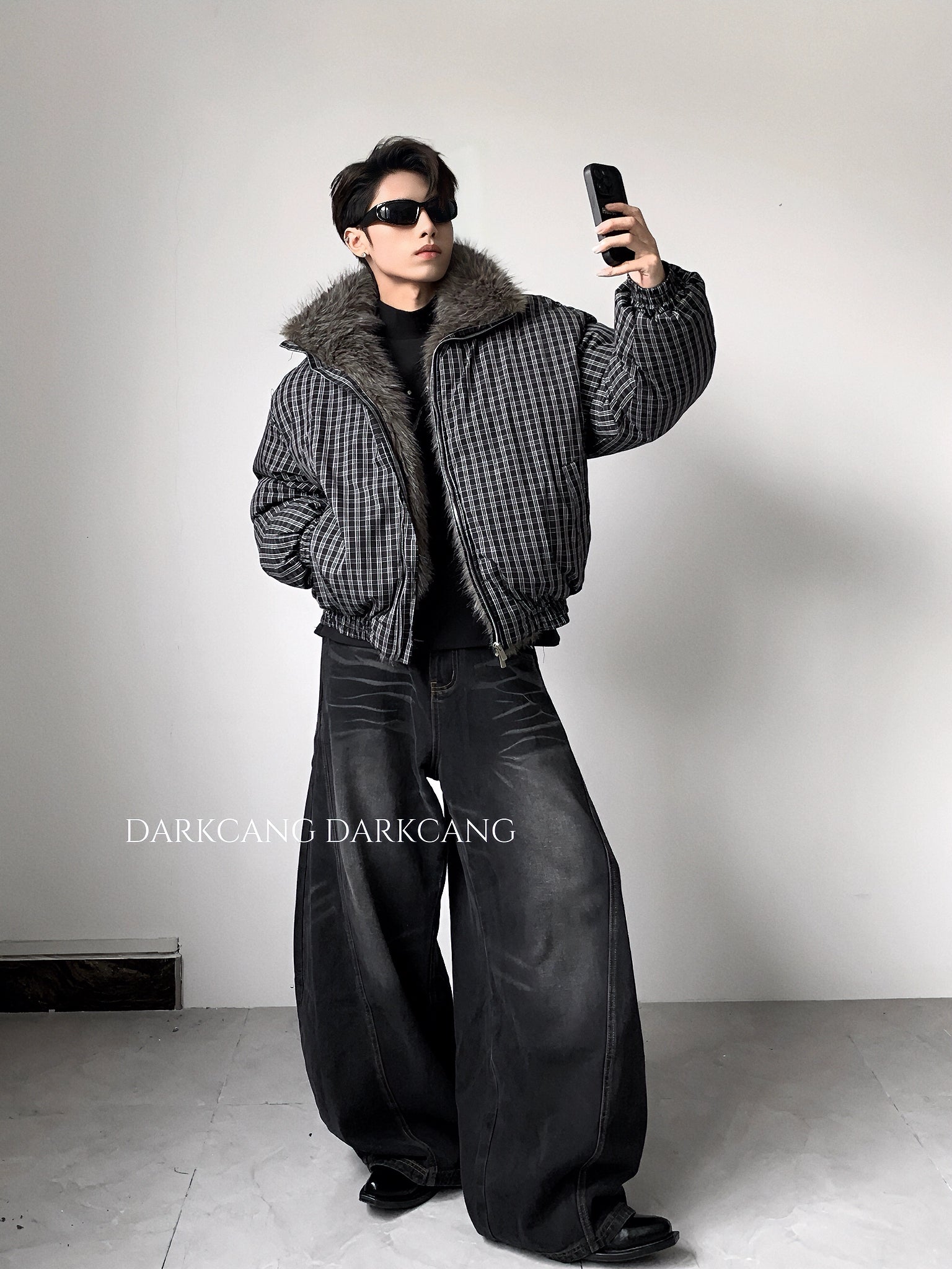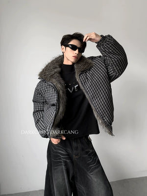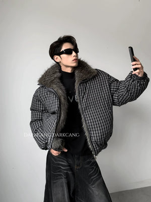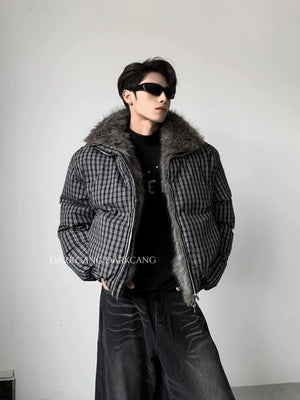 Light luxury warm big fur collar cleanfit seat mountain carving jacket men's padded cotton thickened short cotton clothes tide