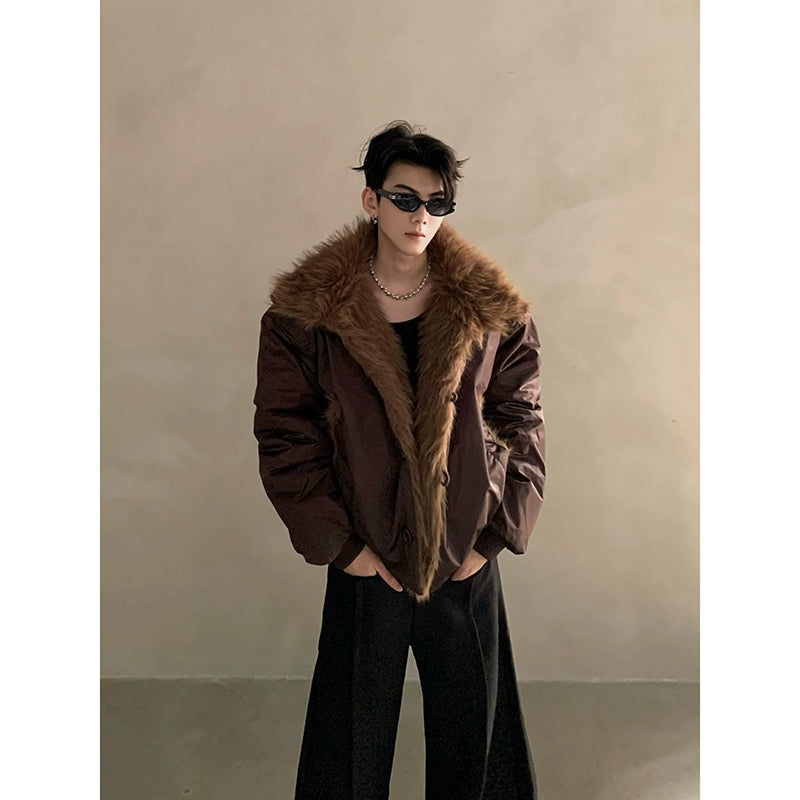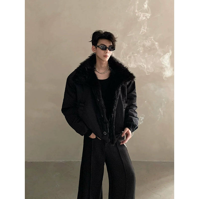 Noble mink hair seat mountain carving jacket men's winter piled thickened heavy fur collar cotton clothes tide