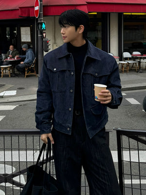 Retro style ruffian handsome tooling jacket men's autumn and winter thickened loose coat Korean commuter style wear