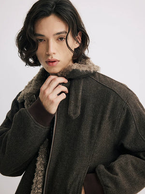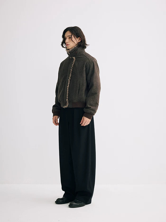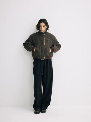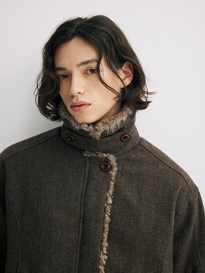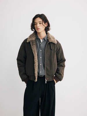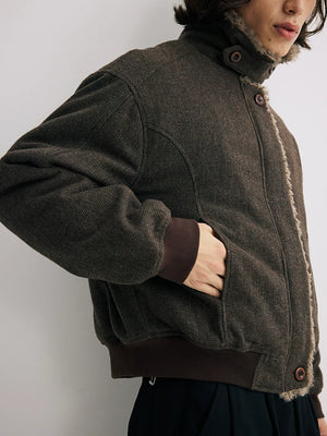 Short wool collar cotton jacket cleanfit lapel retro wool thick outwearjacket SIN0886