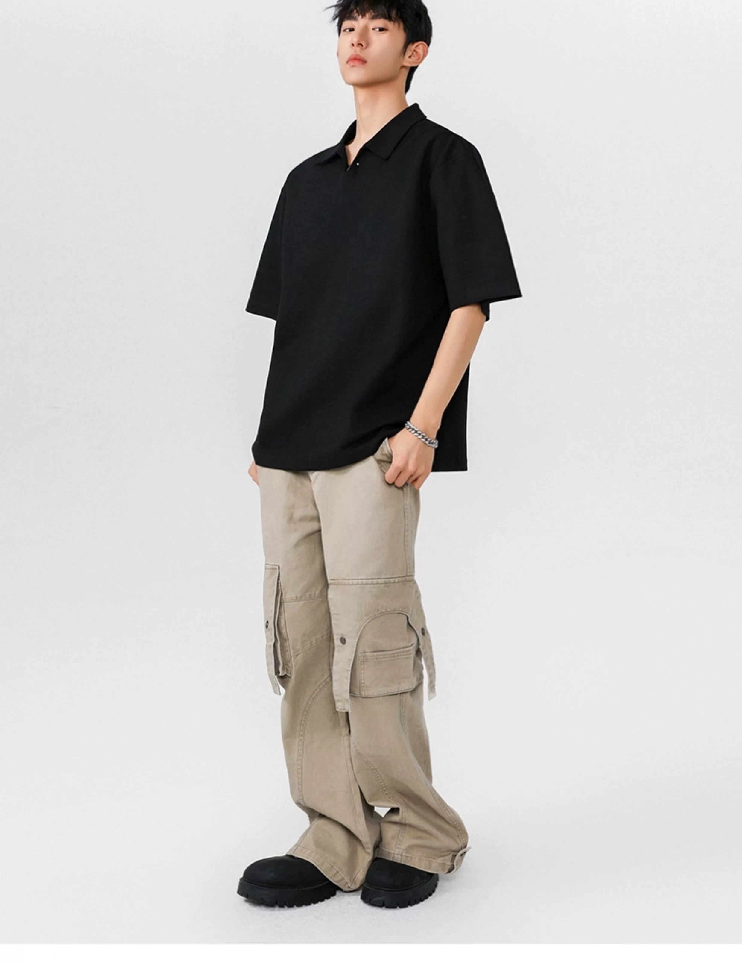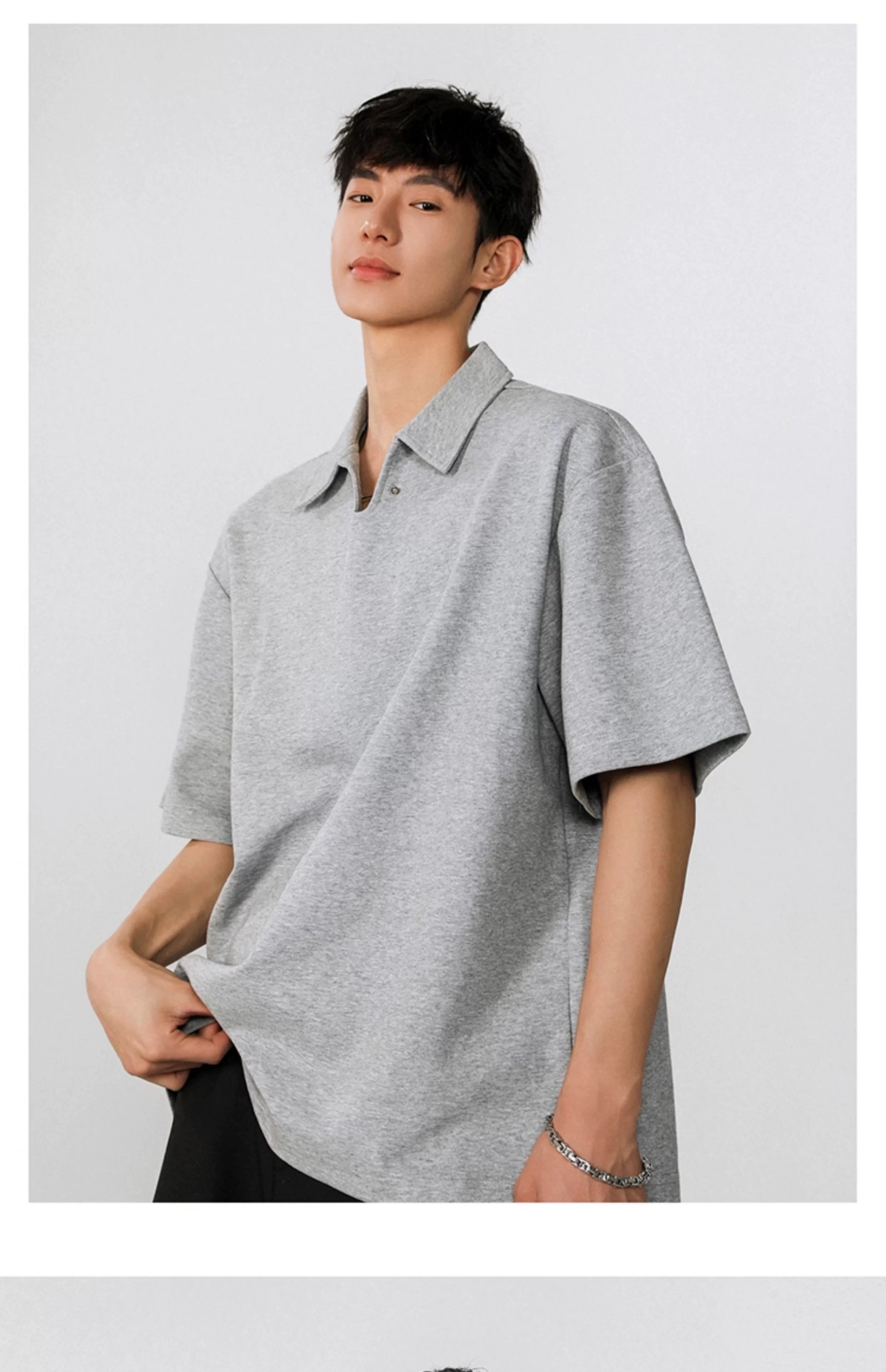 Seagull collar gray short-sleeved men's polo shirt SIN010