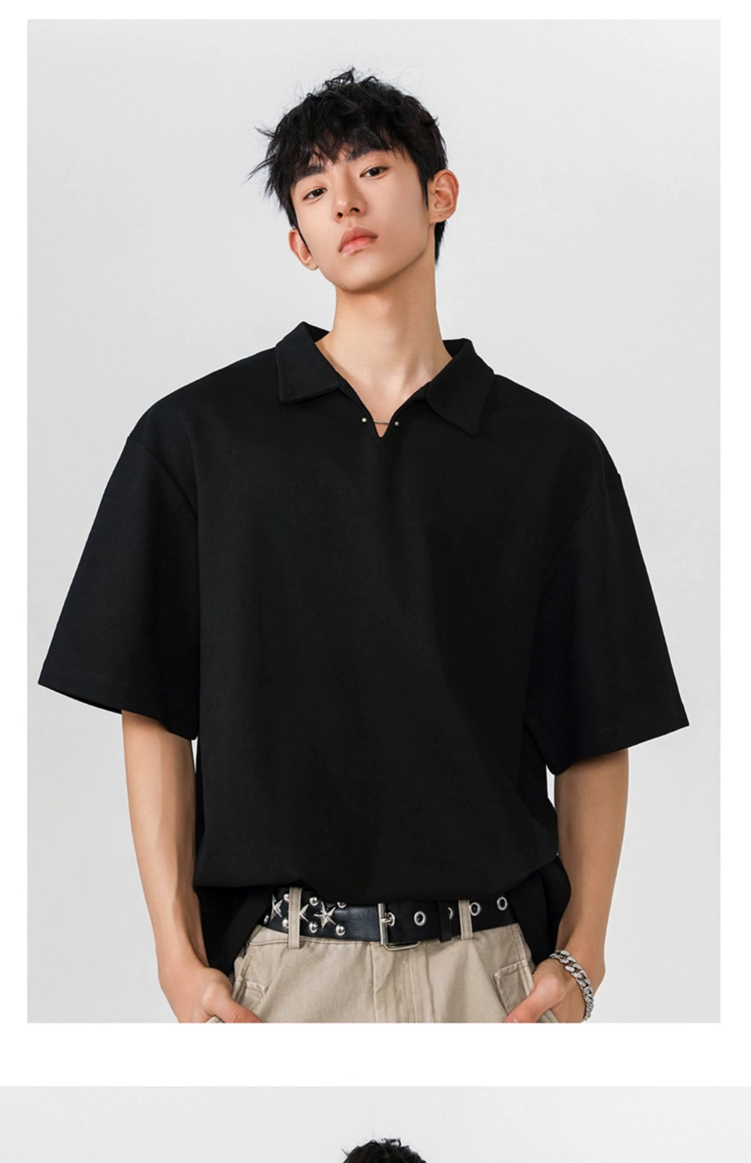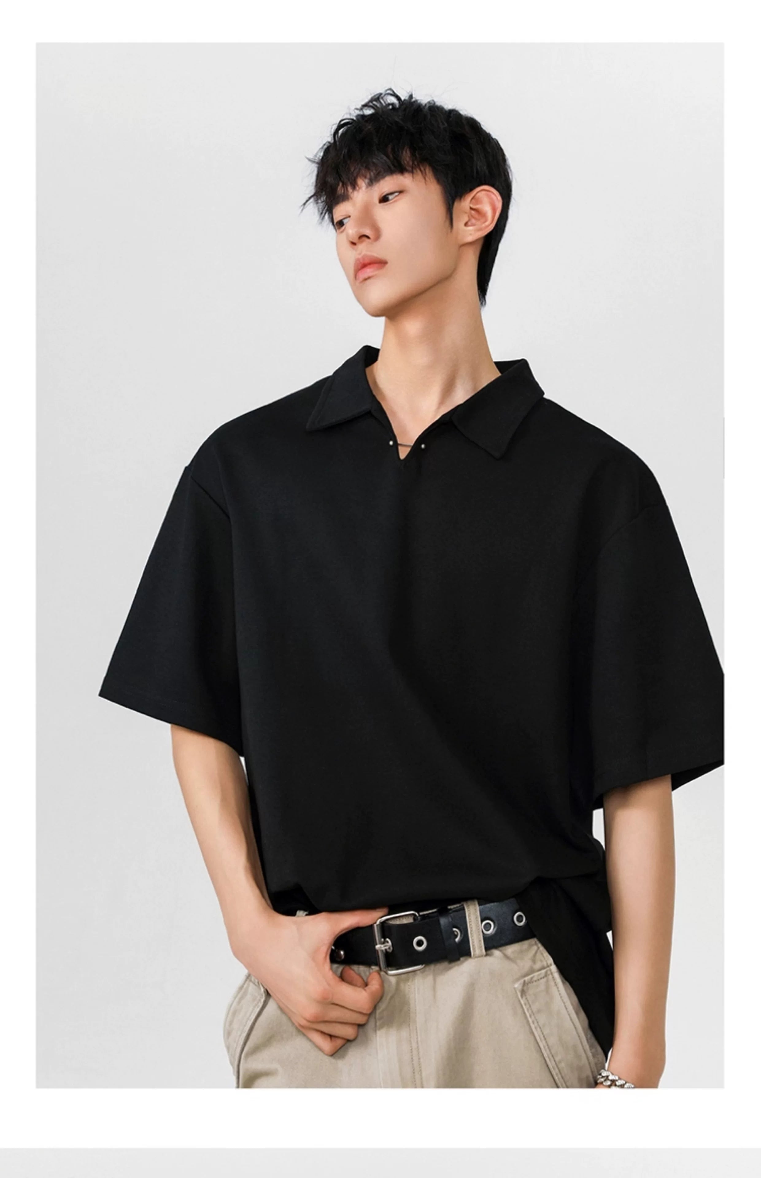 Seagull collar gray short-sleeved men's polo shirt  SIN010