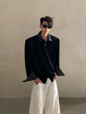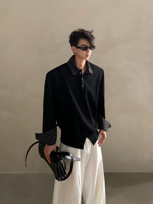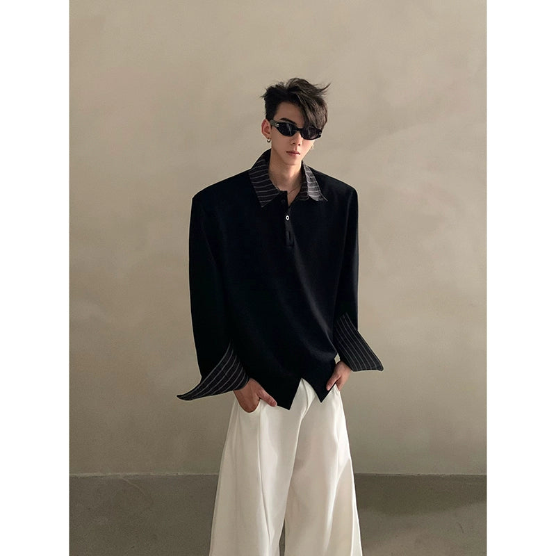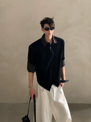 Niche light luxury high-end sense fake two-piece splicing design sense ruffian handsome casual Polo shirt men's trend