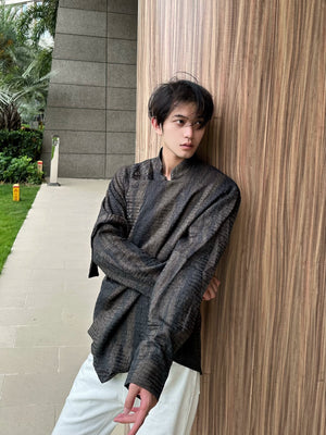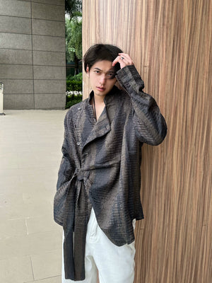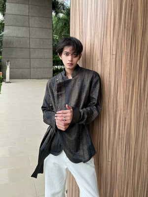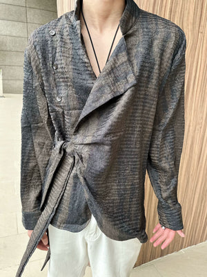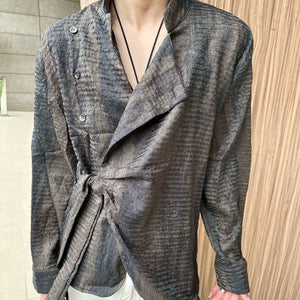 Retro new Chinese style old texture crumpled strap shirt loose casual versatile long-sleeved shirt