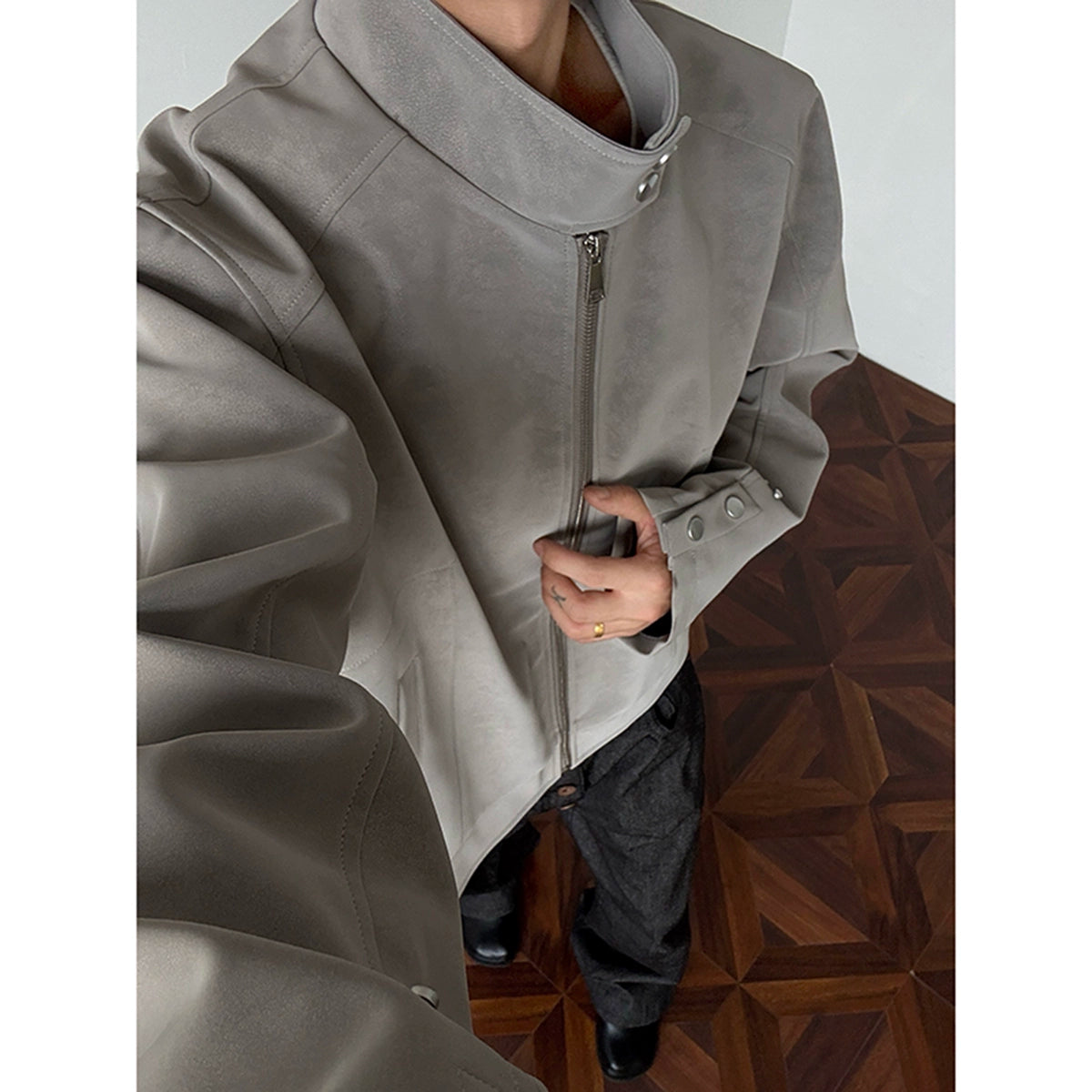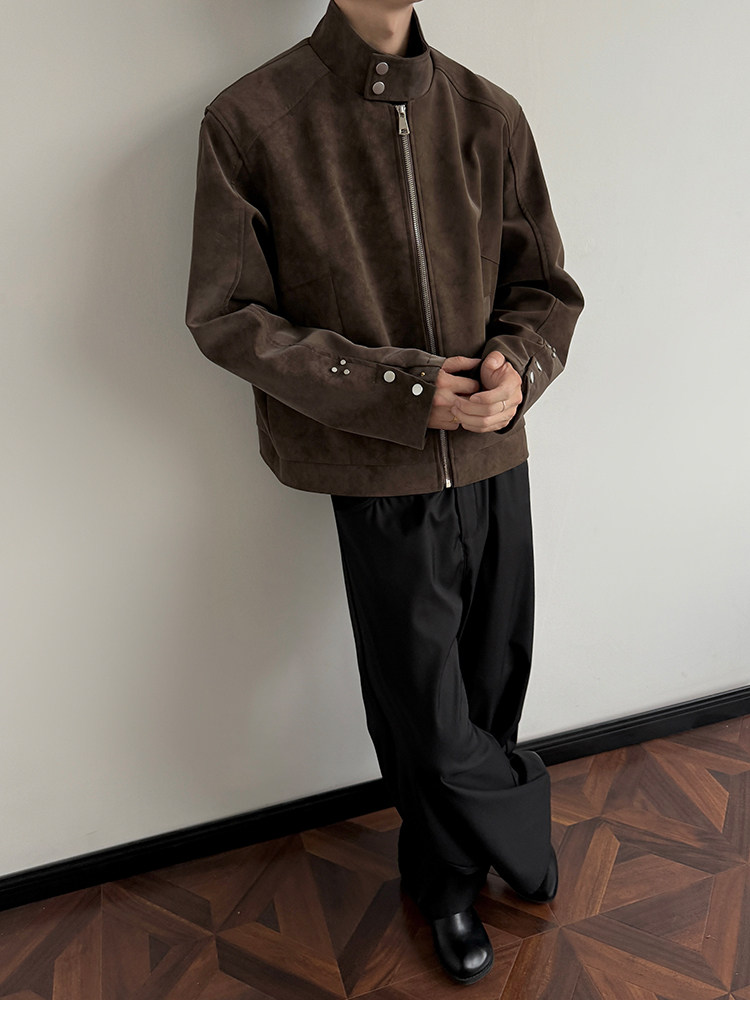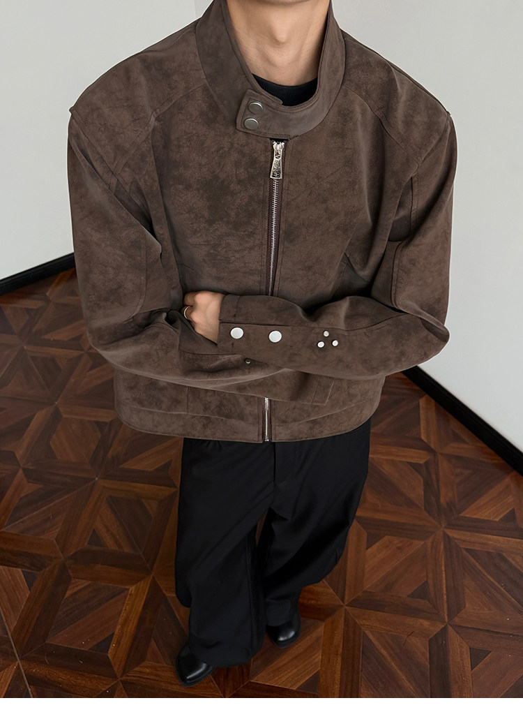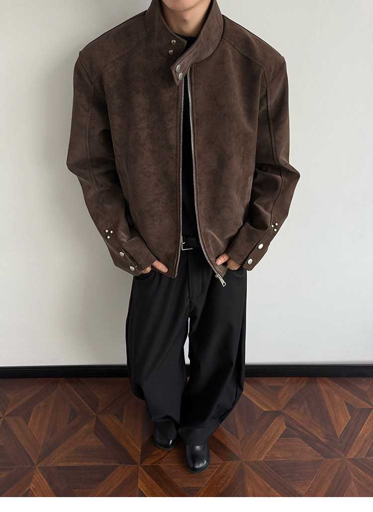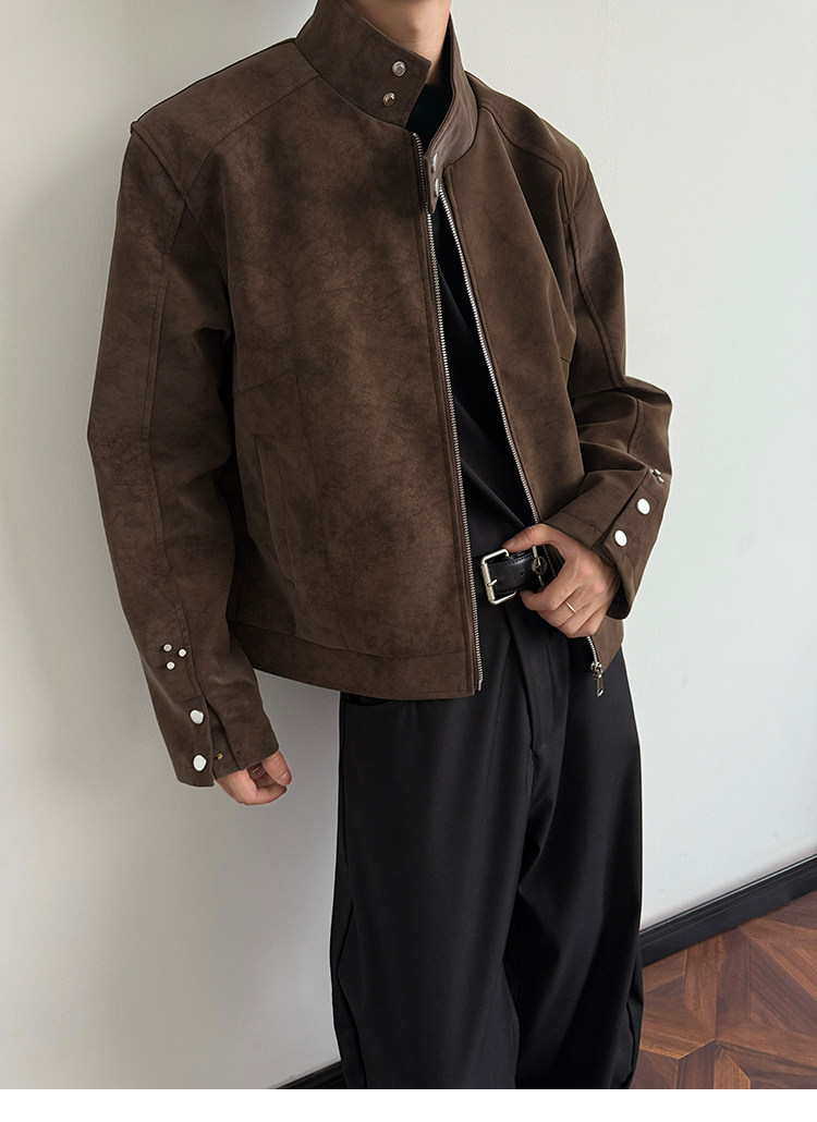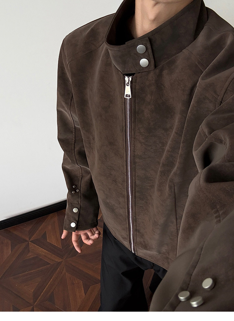 American Harrington pu leather jacket jacket men's trendy brand autumn high street design sense ruffian handsome locomotive suit stand-up collar leather jacket