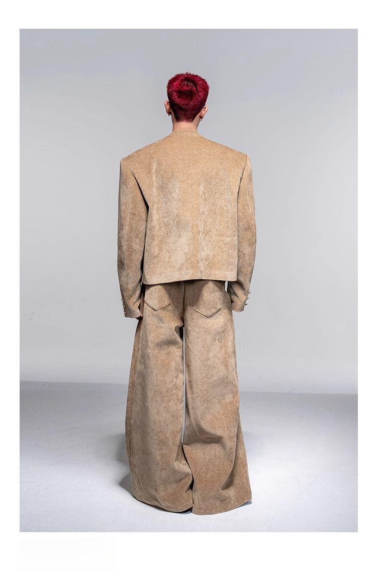 High-end suit suit men's autumn and winter casual suit jacket shoulder padded jacket velvet wide-leg pants two-piece set