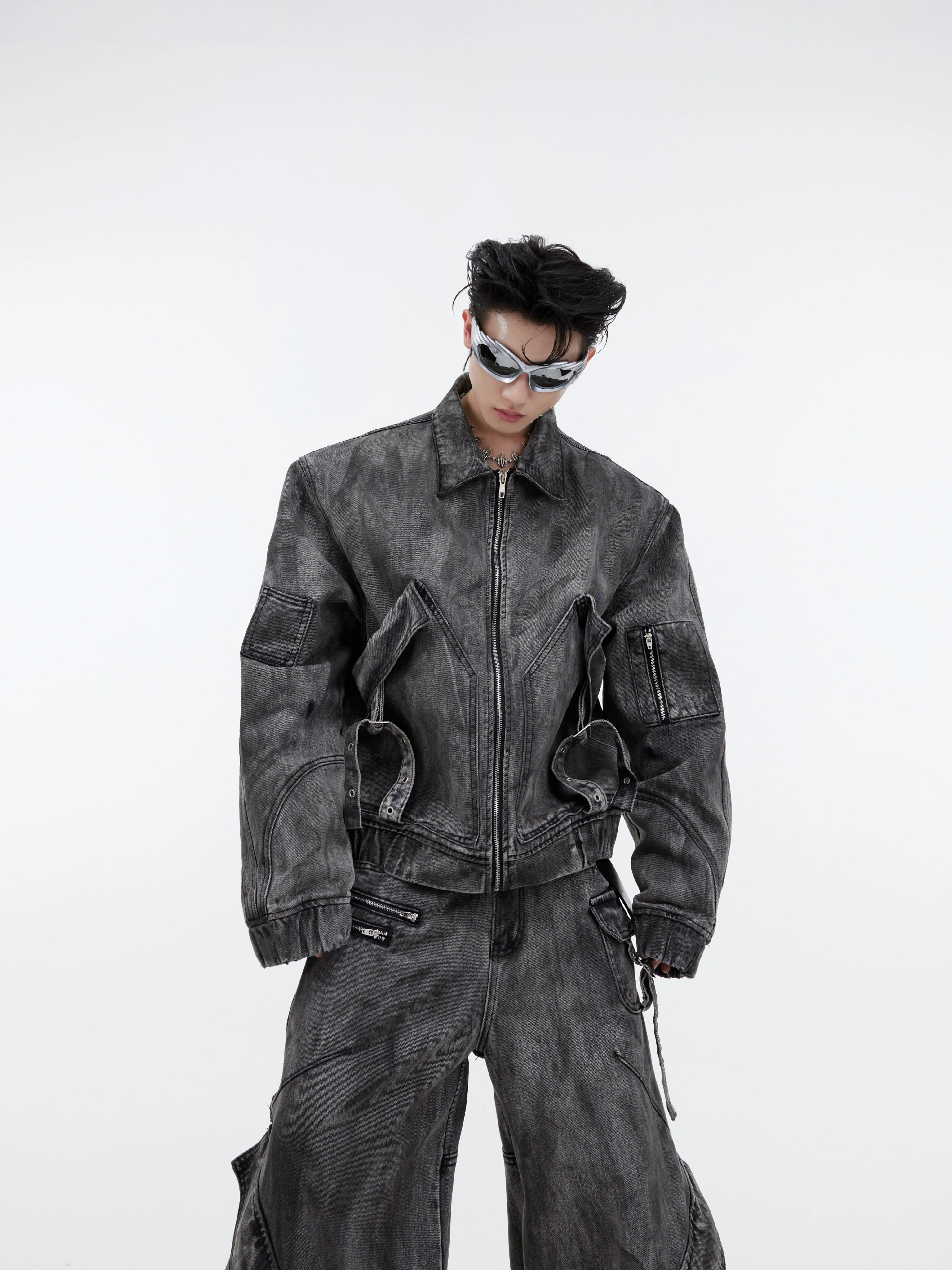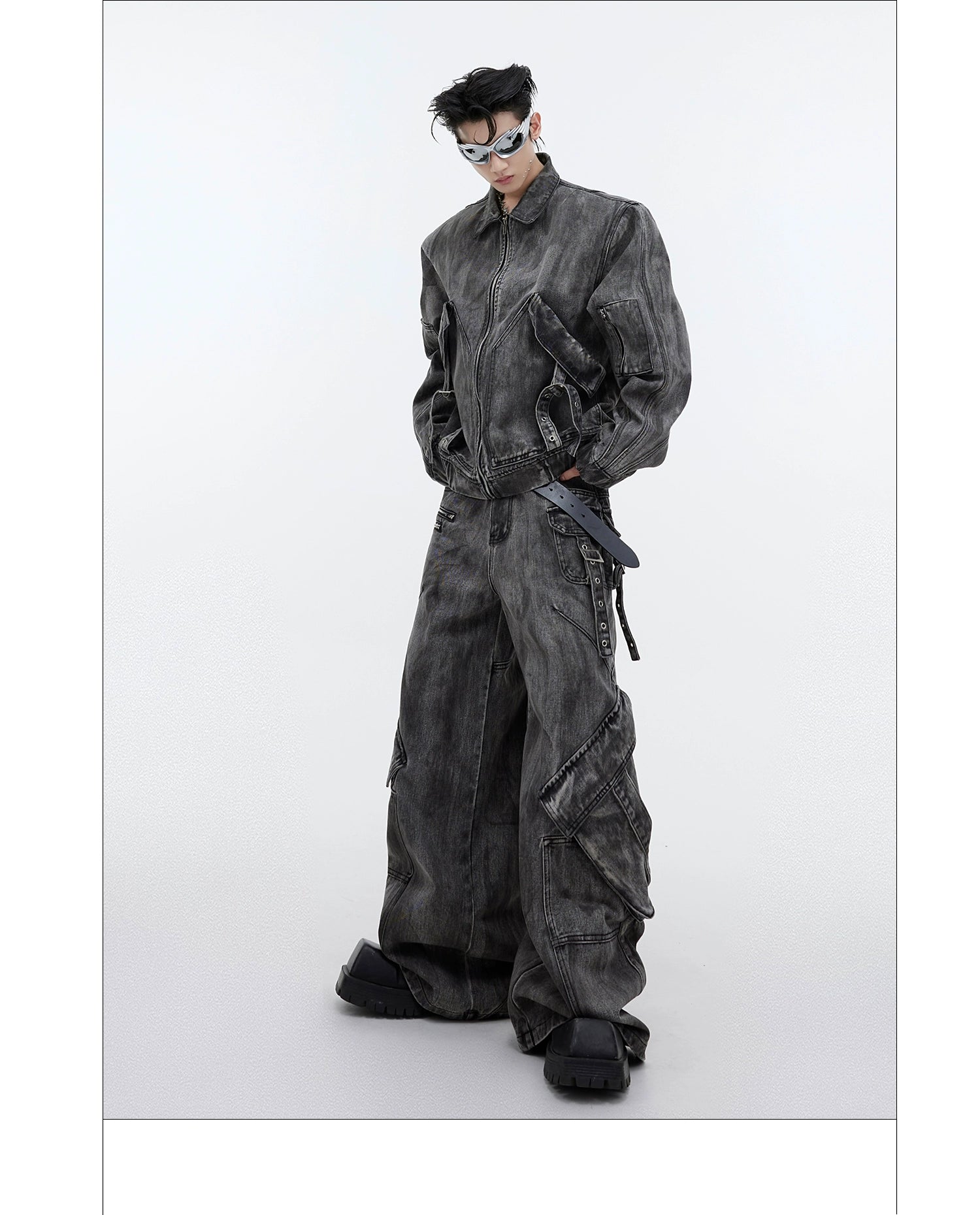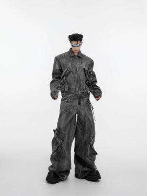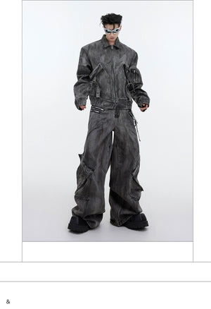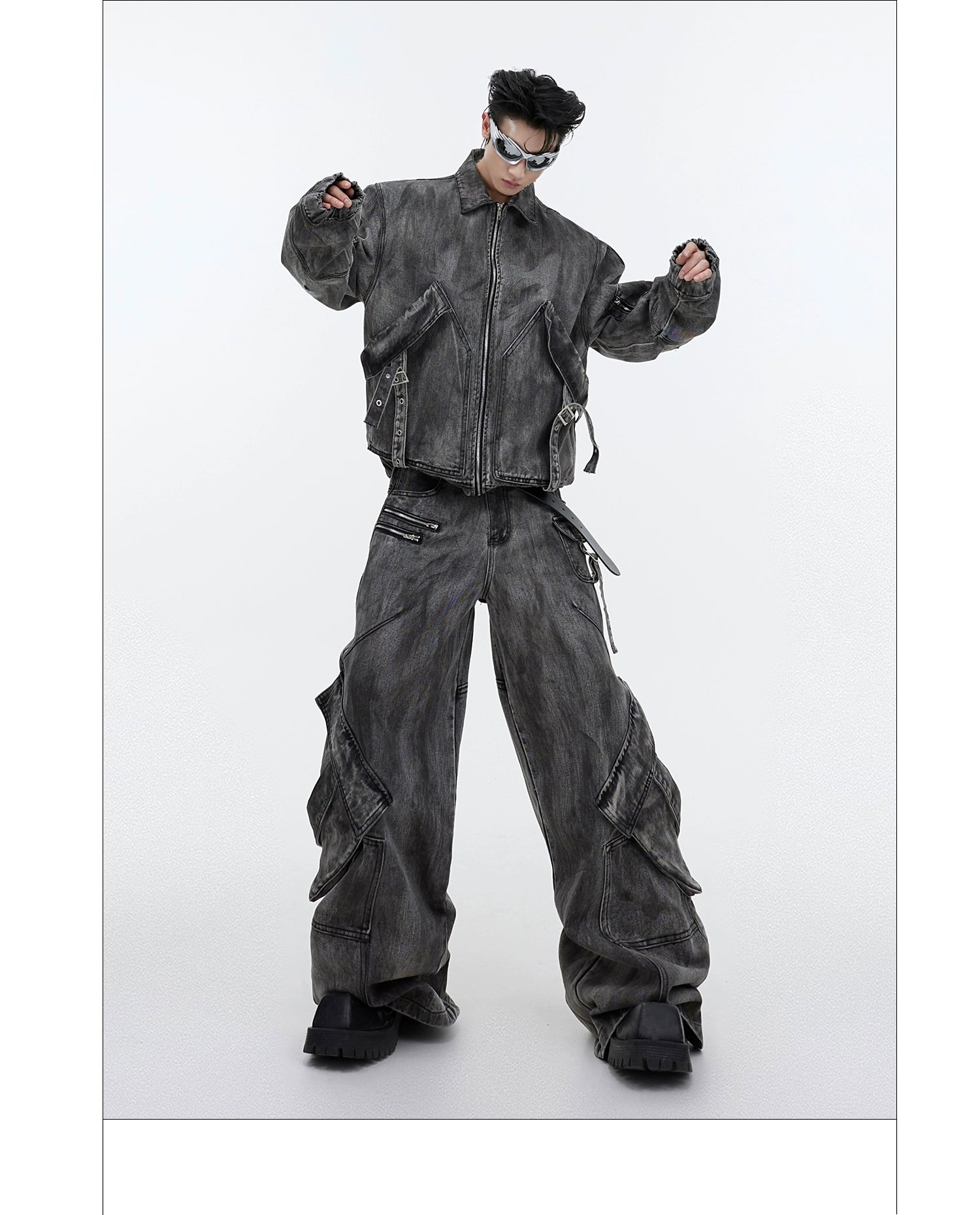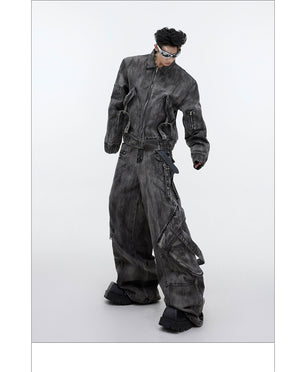Niche retro old denim suit jacket jacket wasteland heavy zipper big pocket overalls