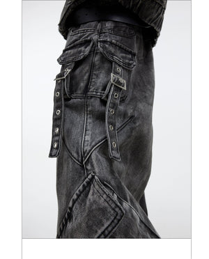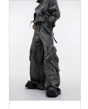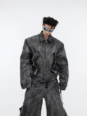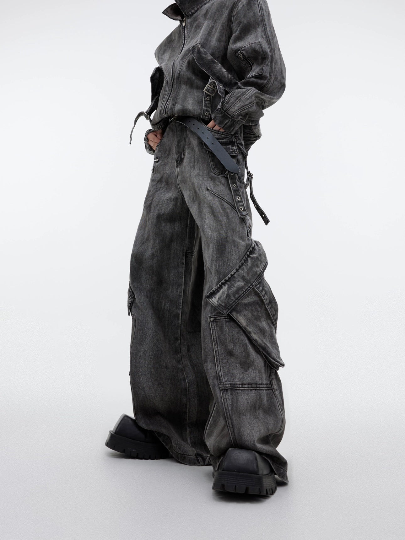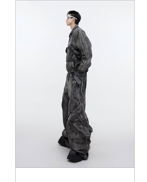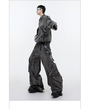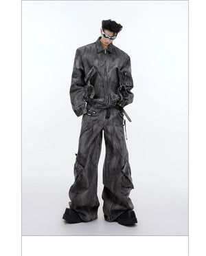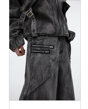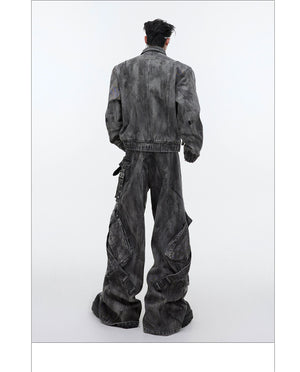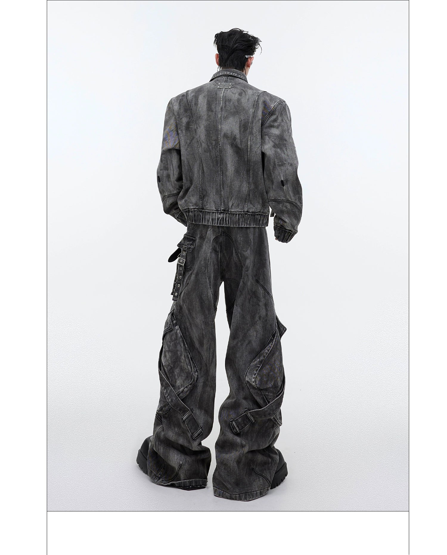 Niche retro old denim suit jacket jacket wasteland heavy zipper big pocket overalls