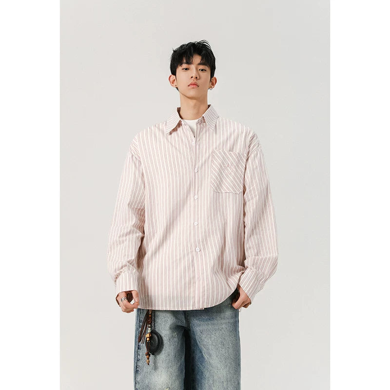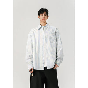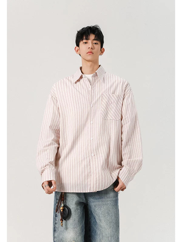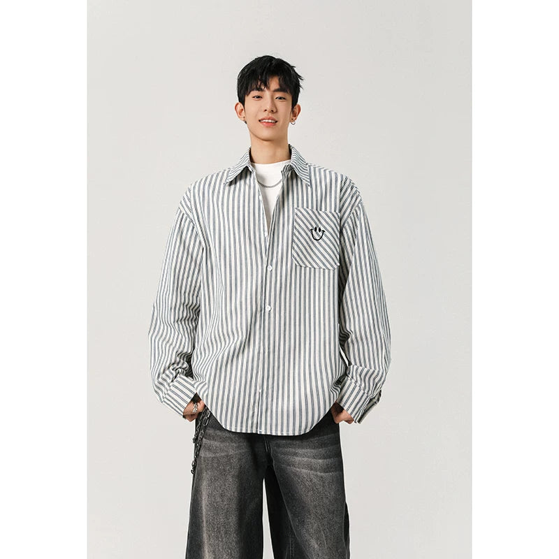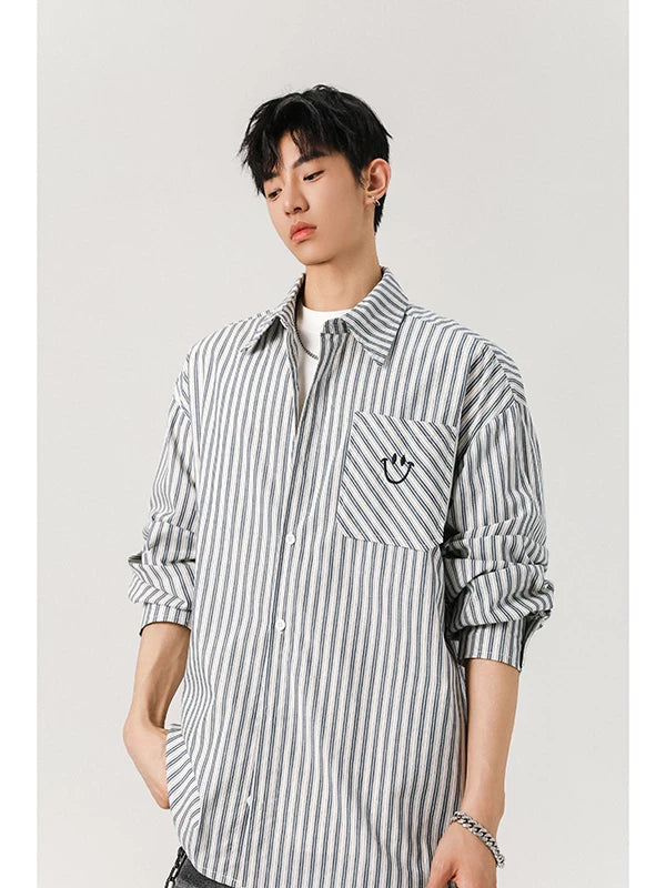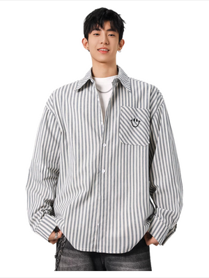 American black and white striped embroidered shirt for men SIN0899