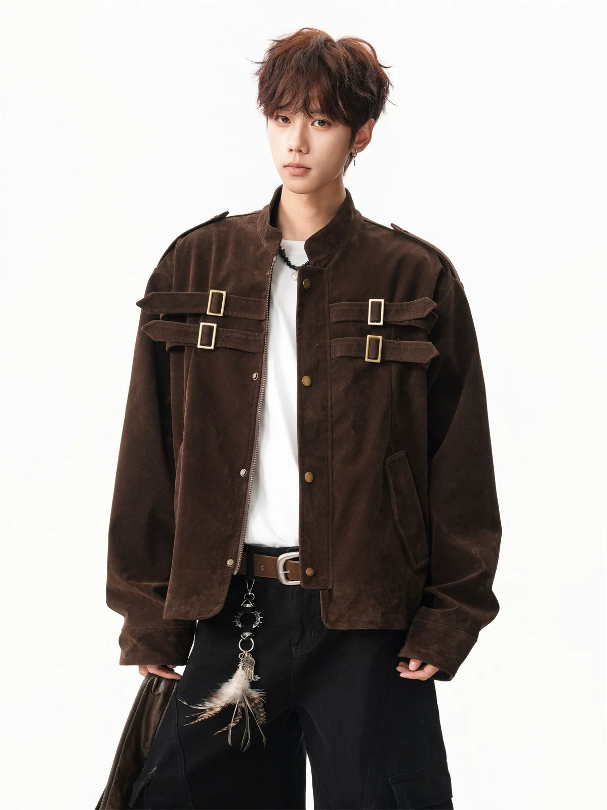 American-style clean fit patchwork design cropped jacket SIN017