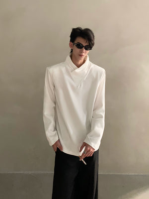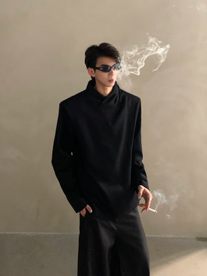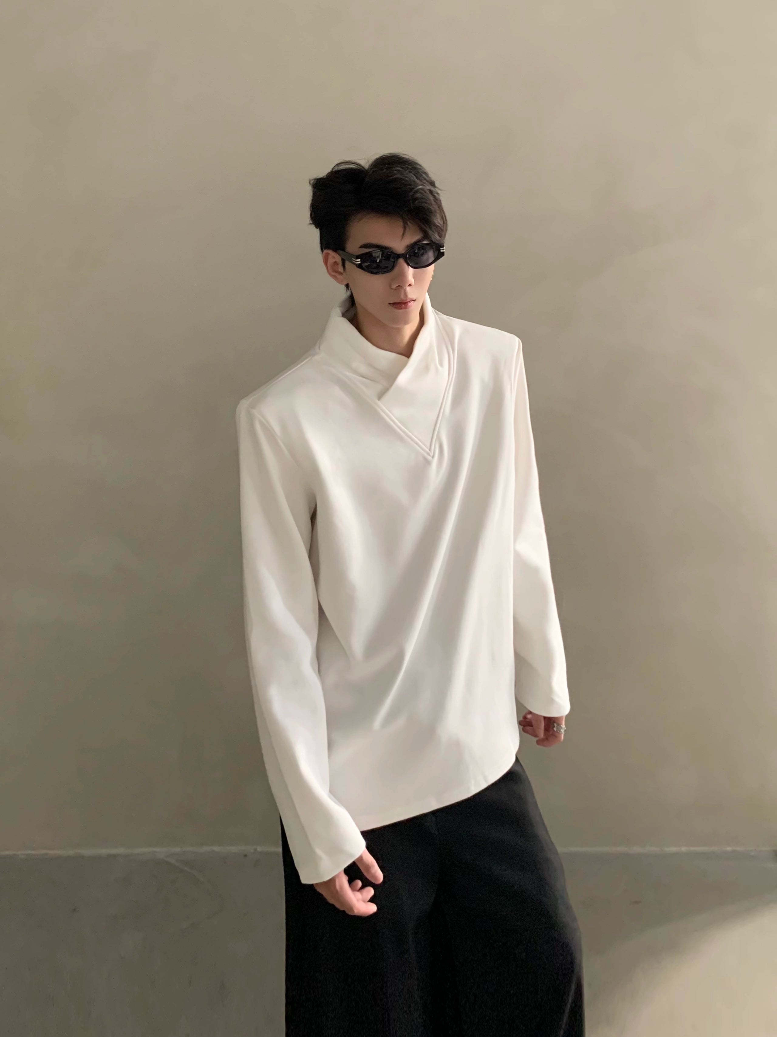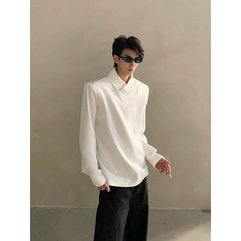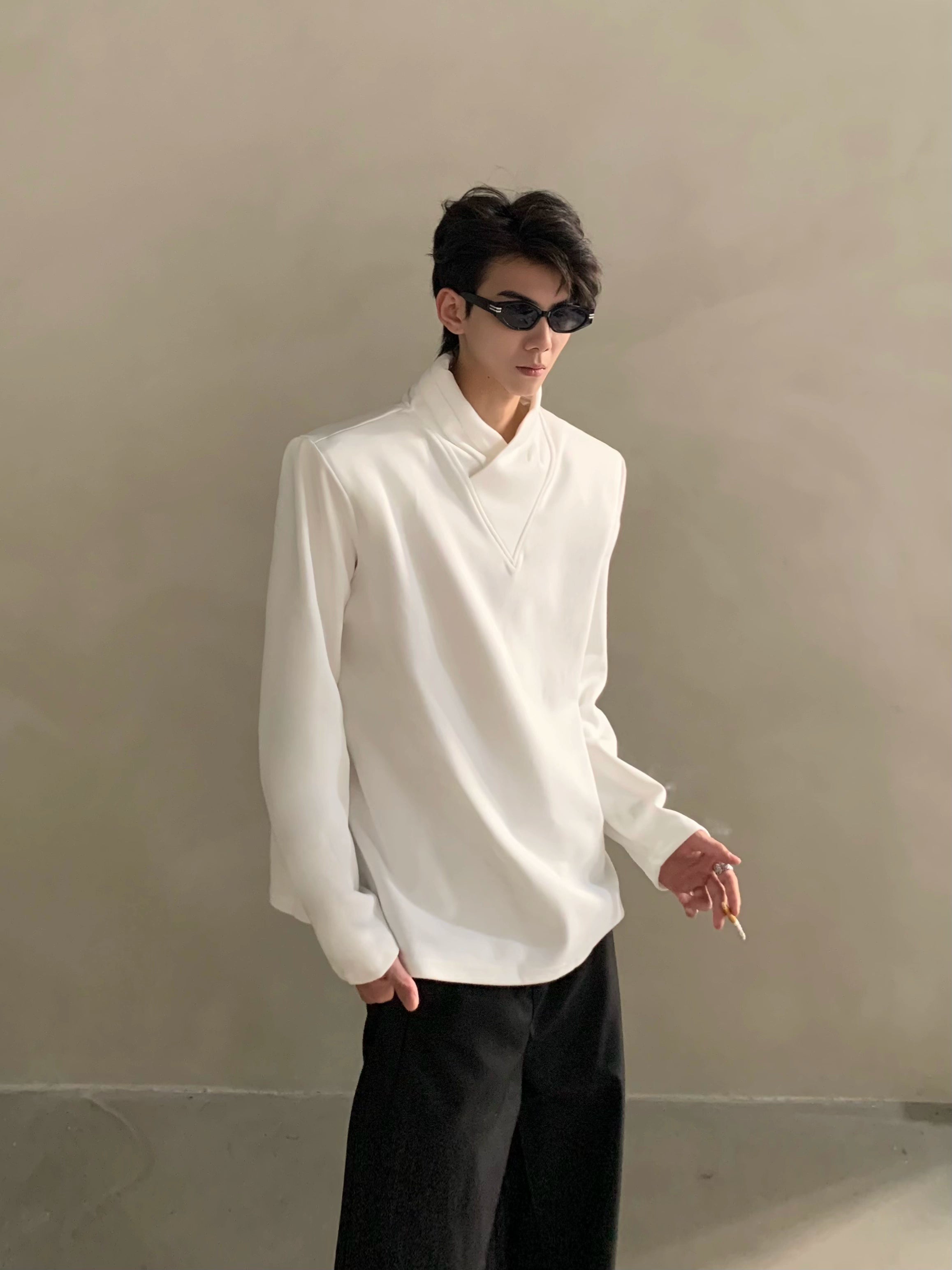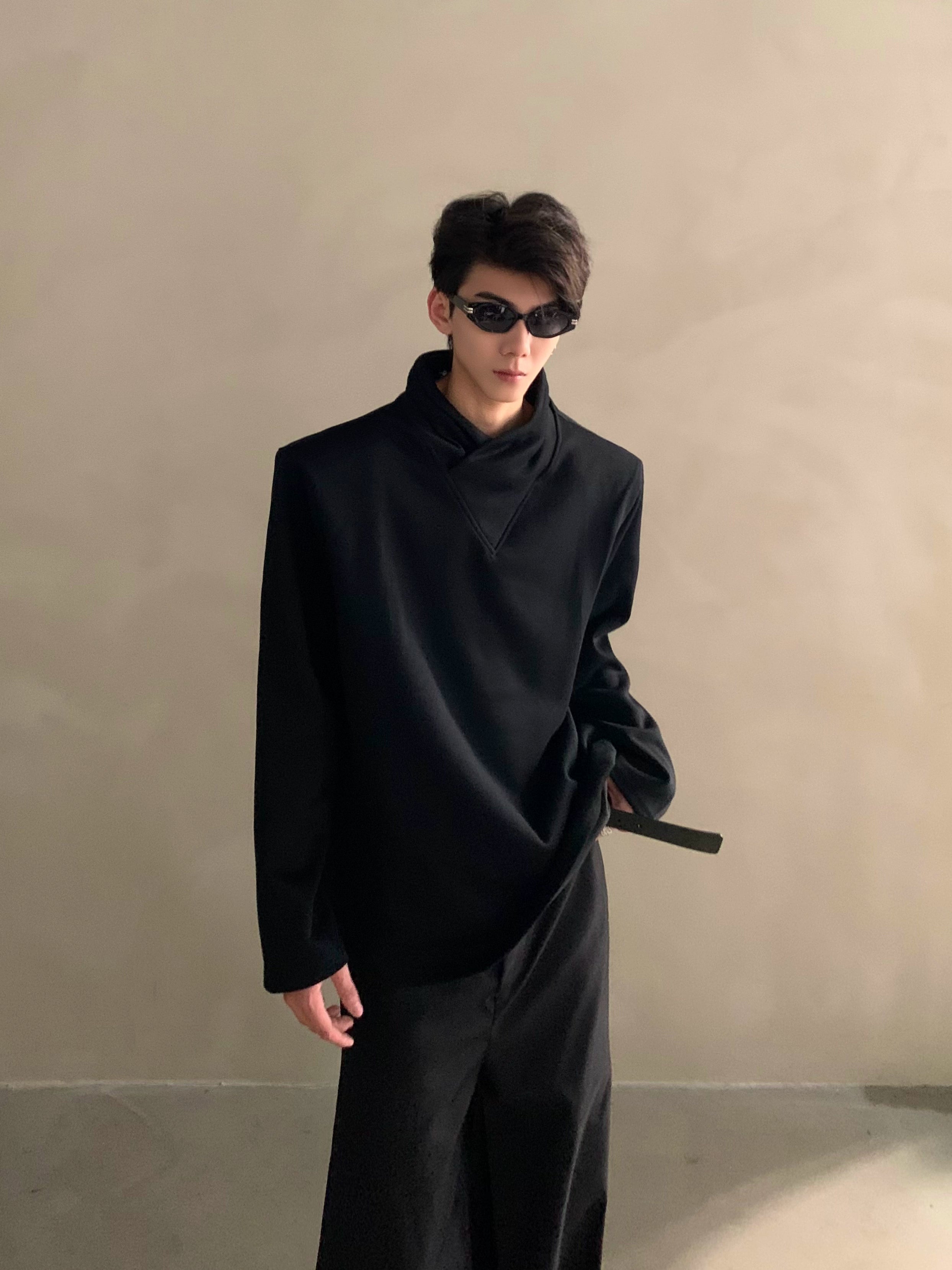 Autumn niche high-end sense stack collar silhouette long-sleeved T-shirt men's loose heavy ruffian handsome top