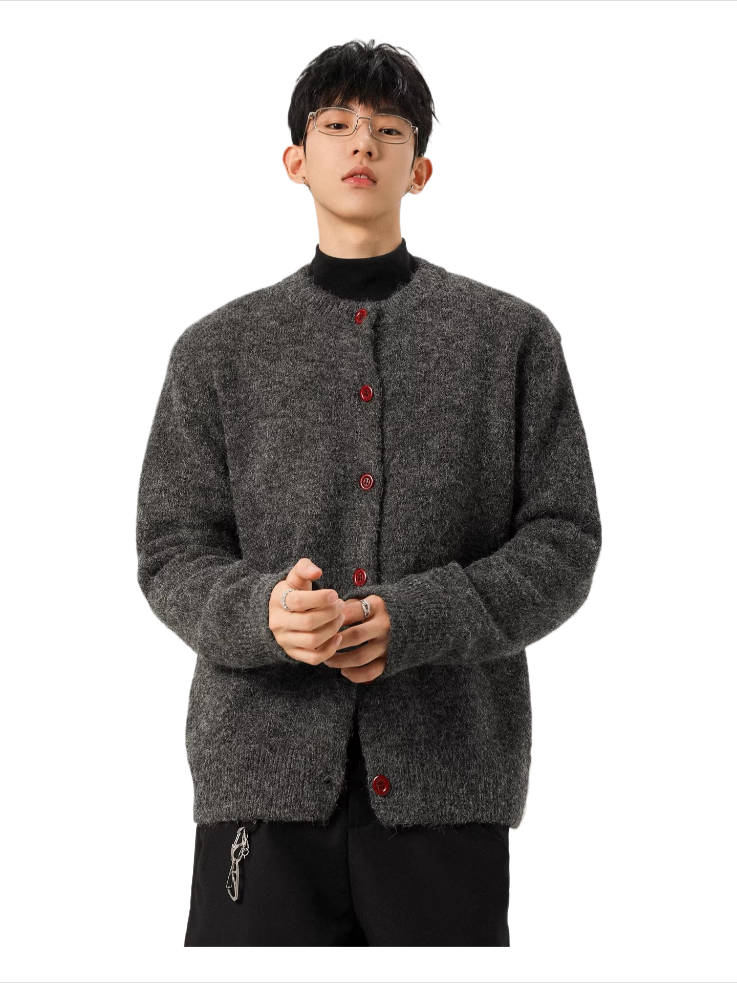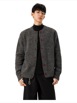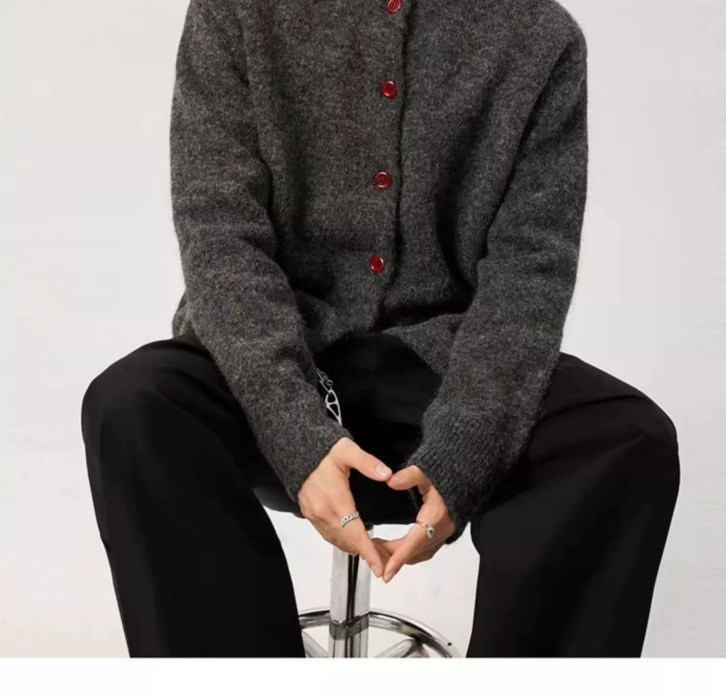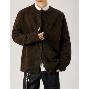 Old money style wool blend cardigansweater men's lazy american retrocleanfitcasualknitting shirt outwear SIN006
