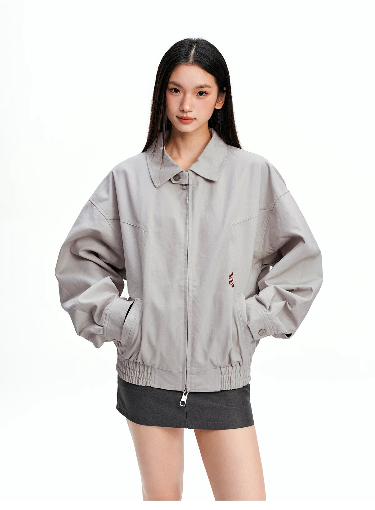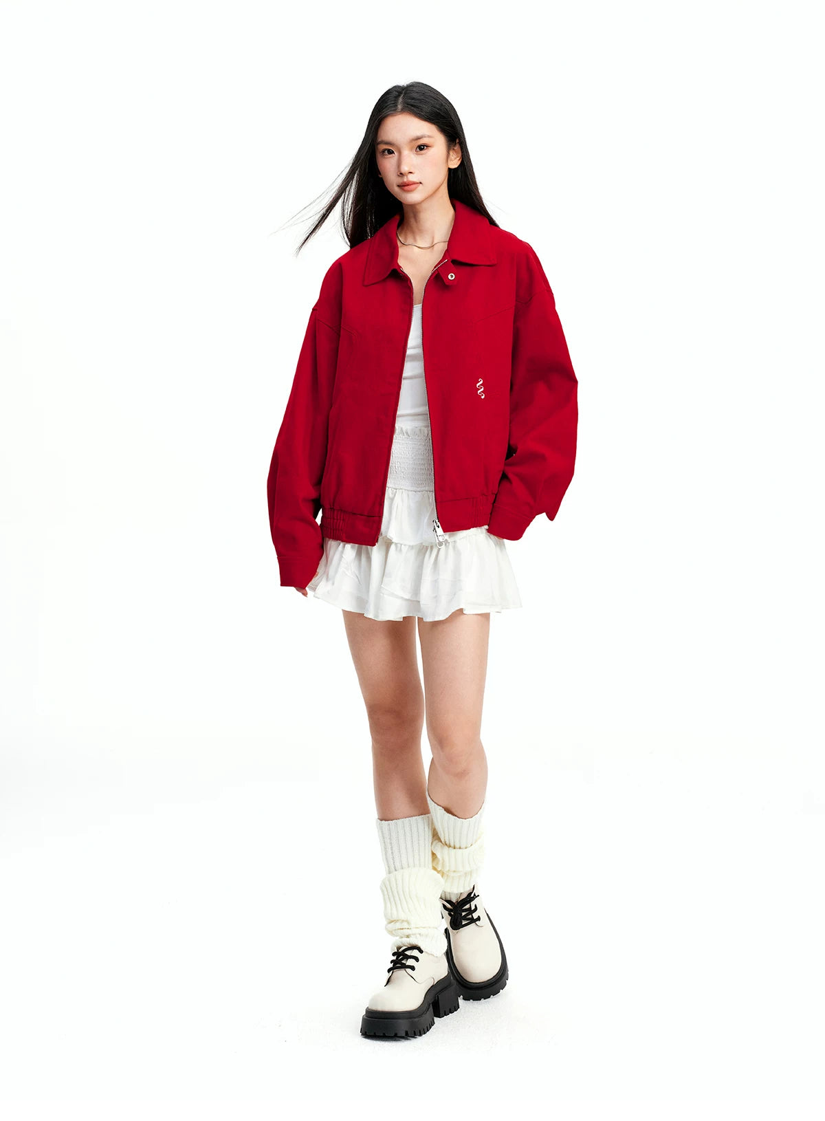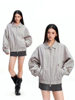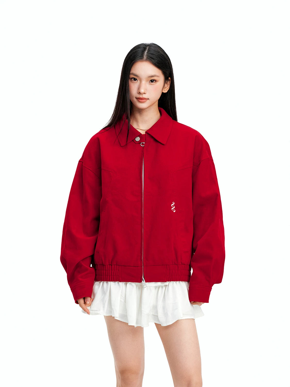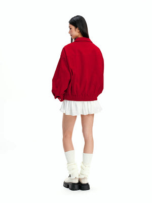 Red harrington jacket - unisex american casual style - couple's outerwear SIN0843