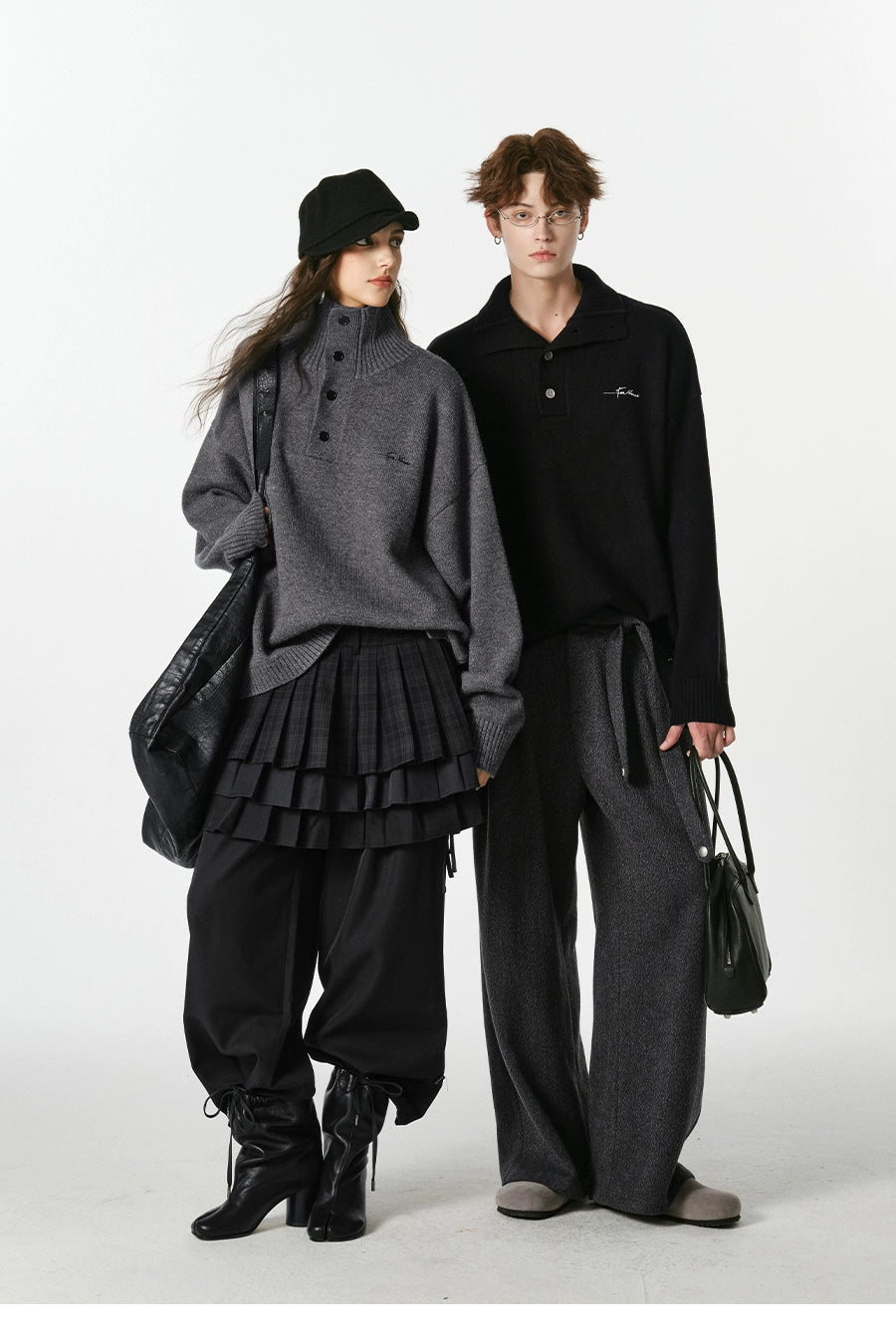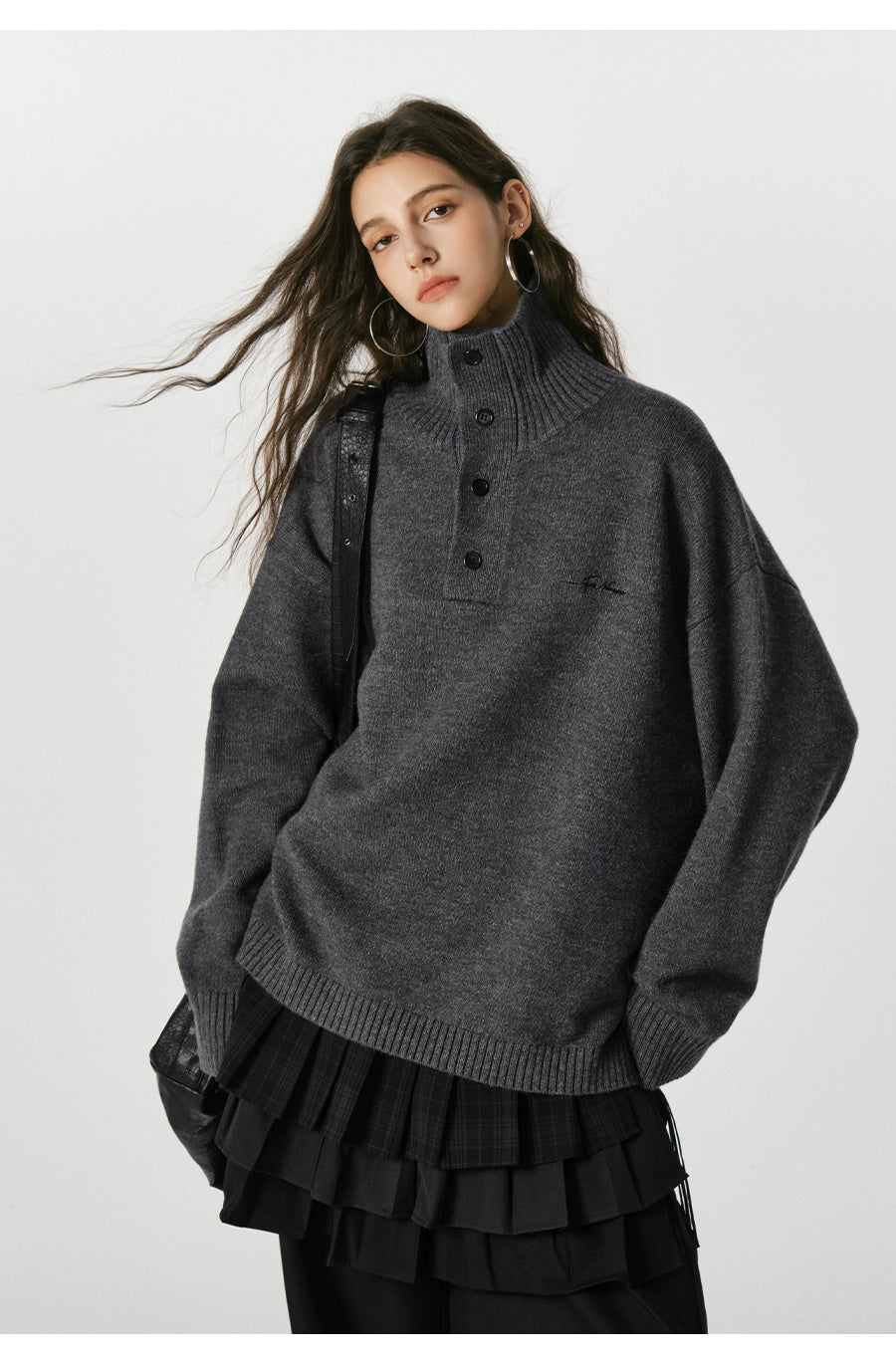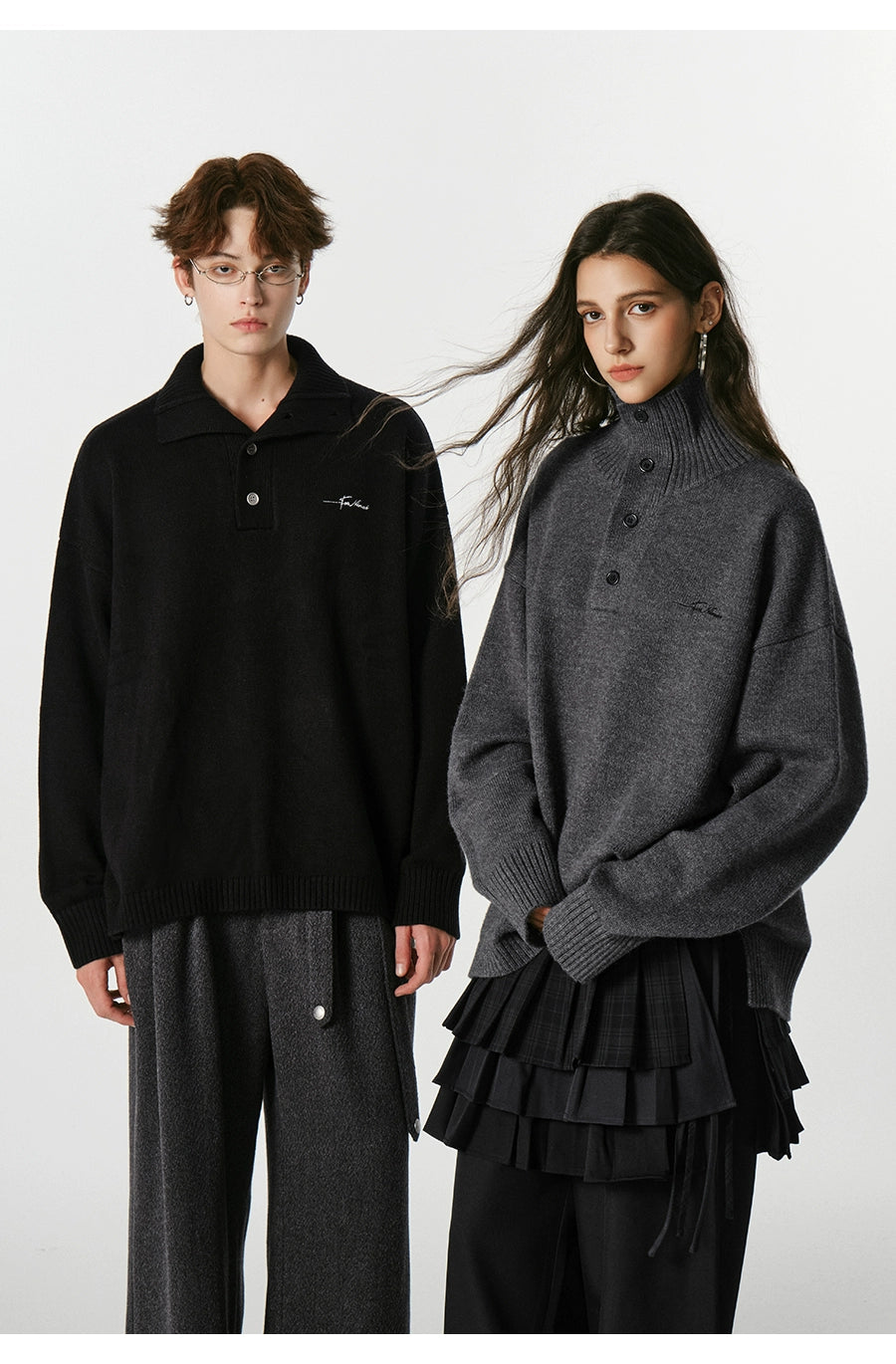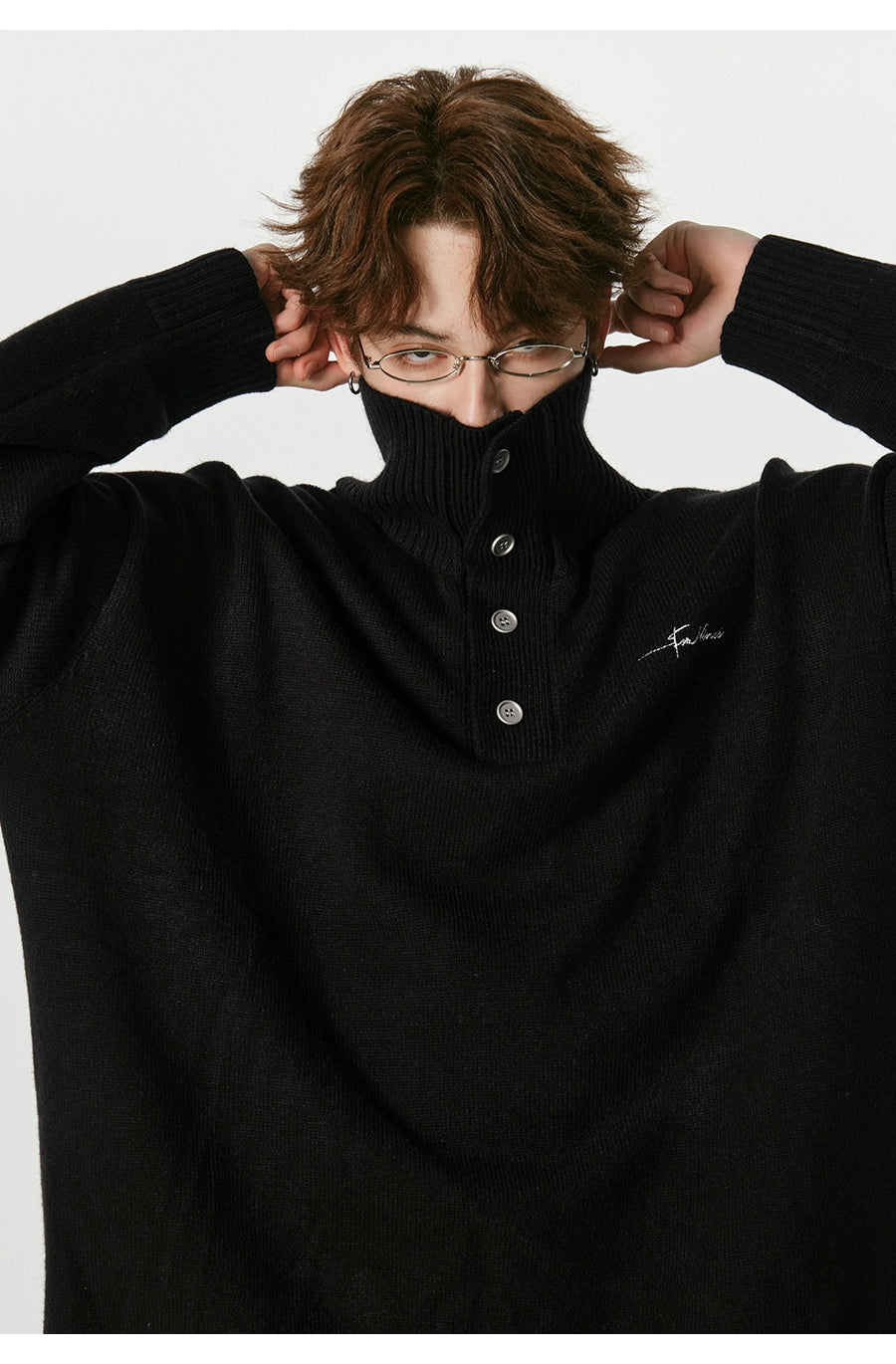 Warm turtleneck sweater men's embroidery lazy couple outfit SIN0801