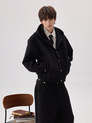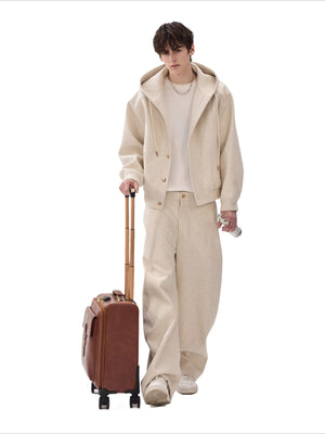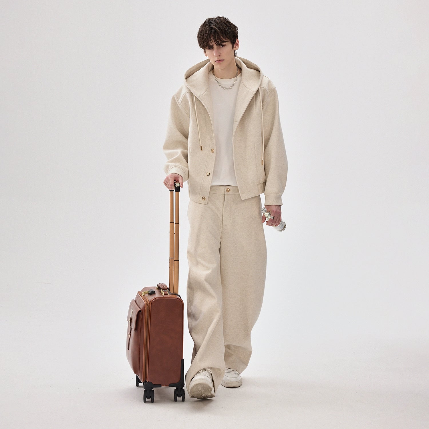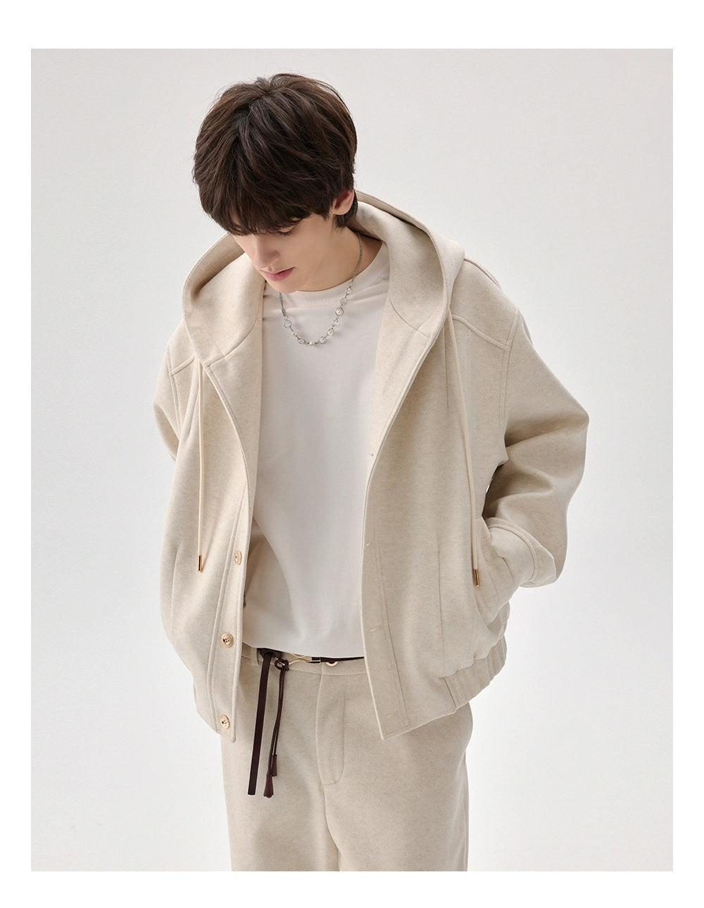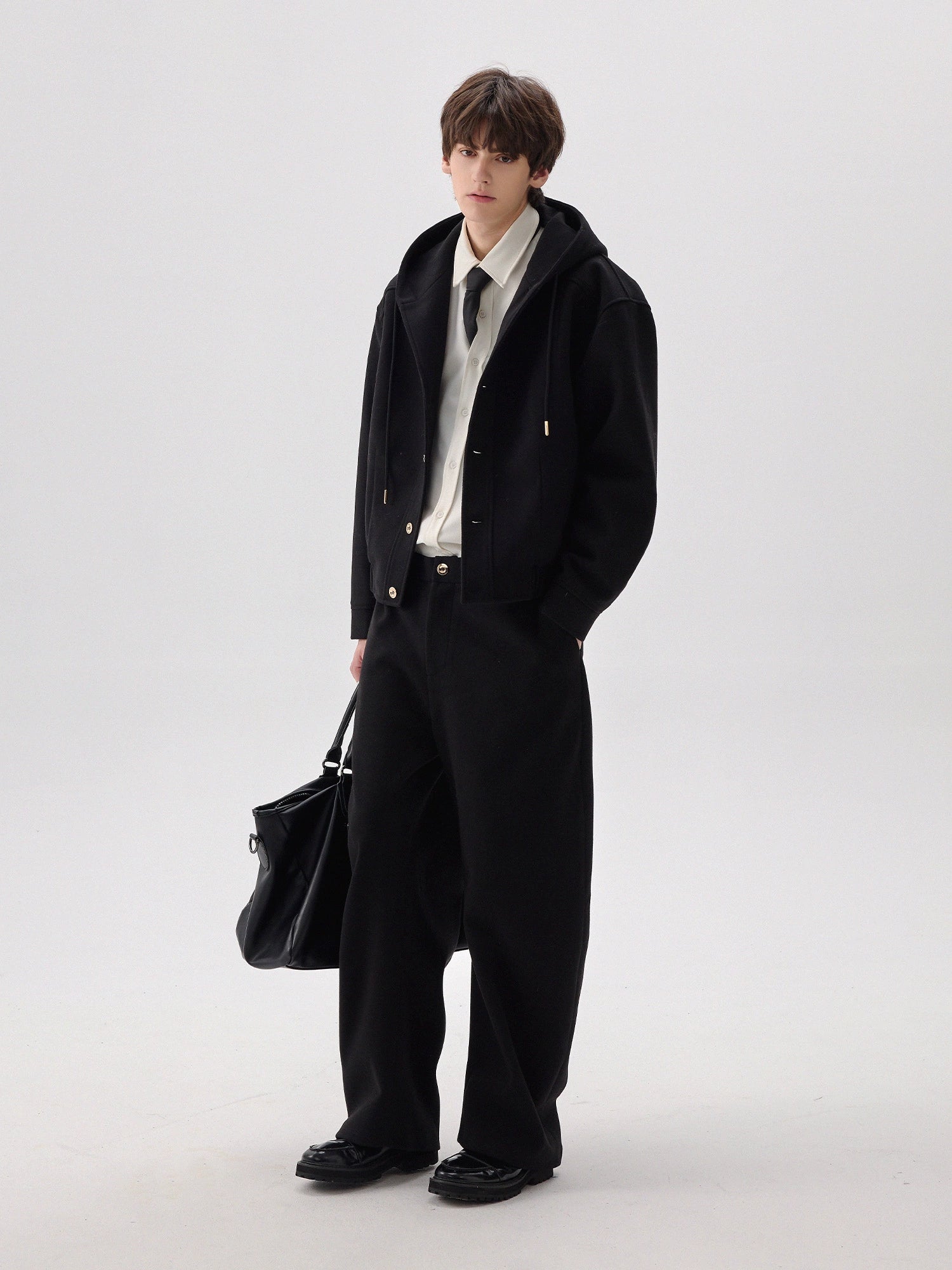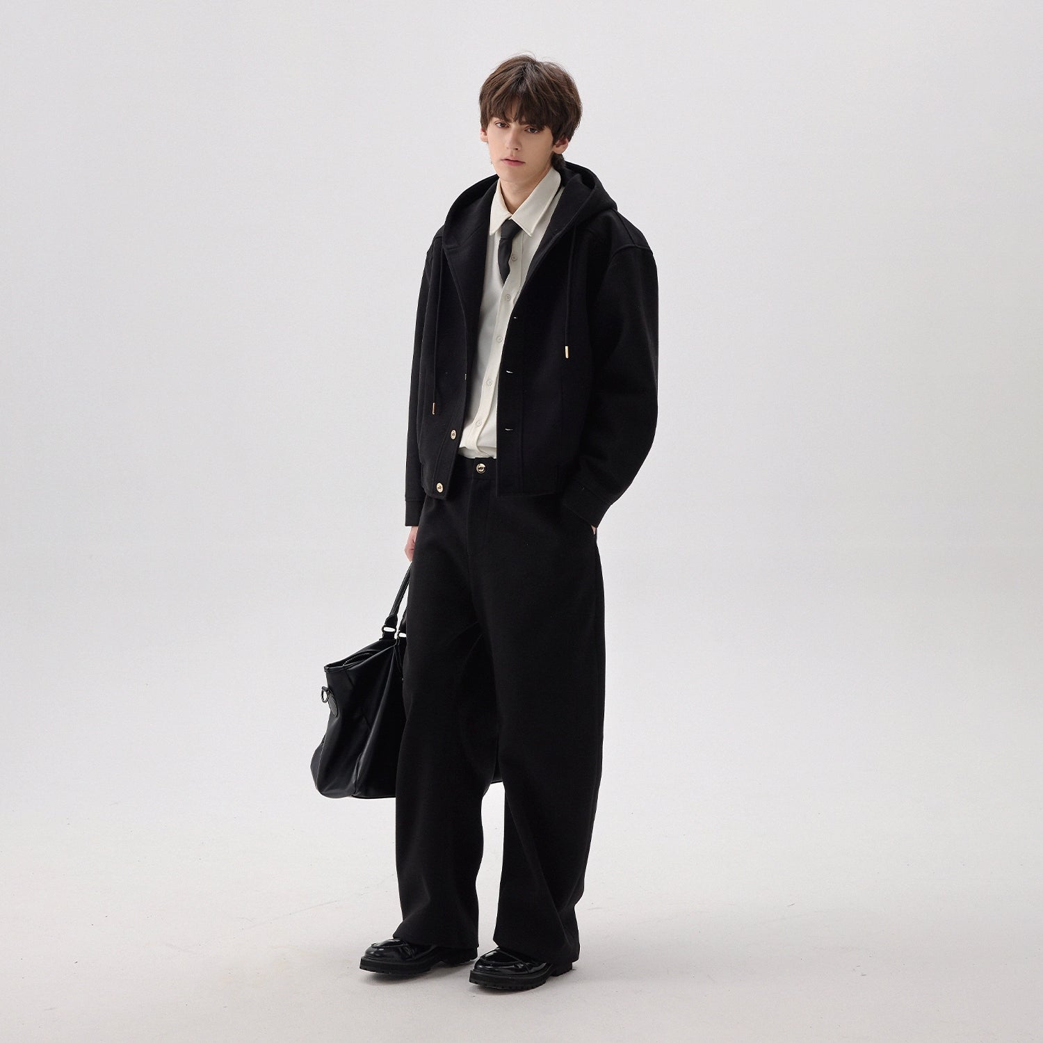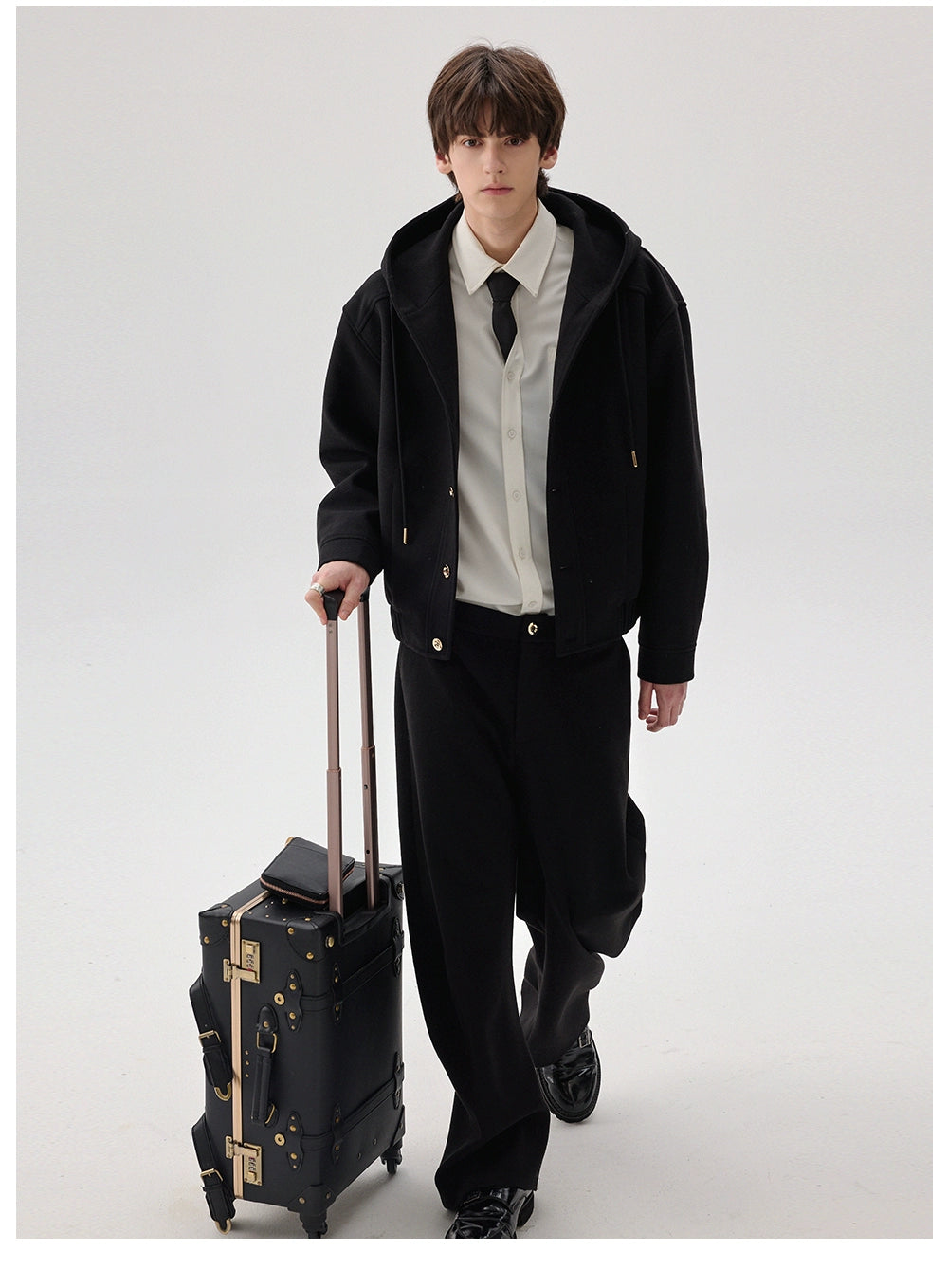 男装高级感金色扣连帽呢料套装时尚男士穿搭一整套