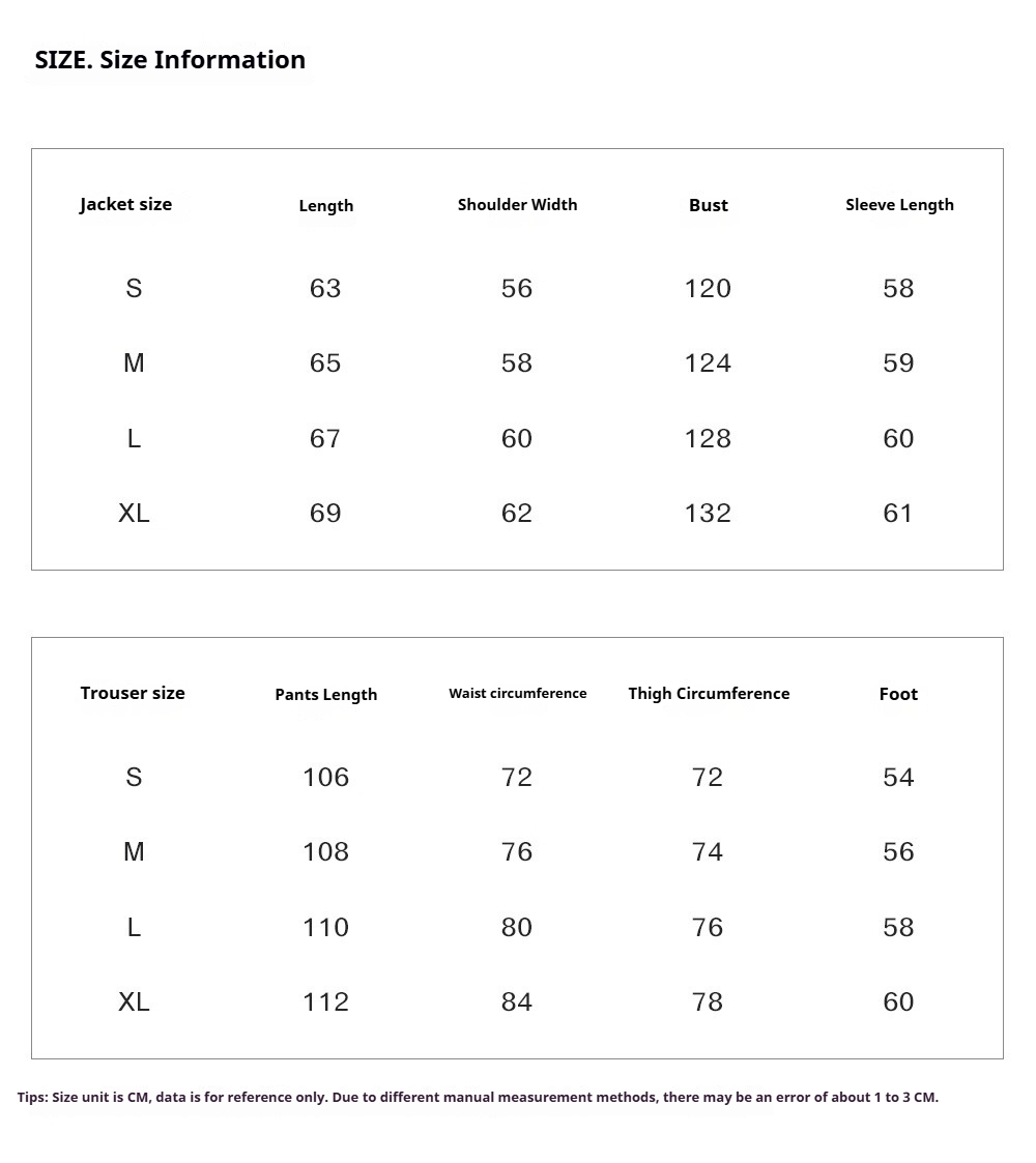 浅卡色上衣, 黑色上衣, 浅卡色裤子, 黑色裤子 |