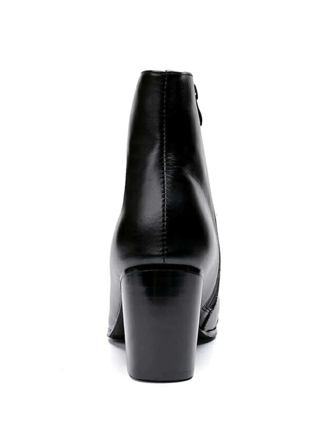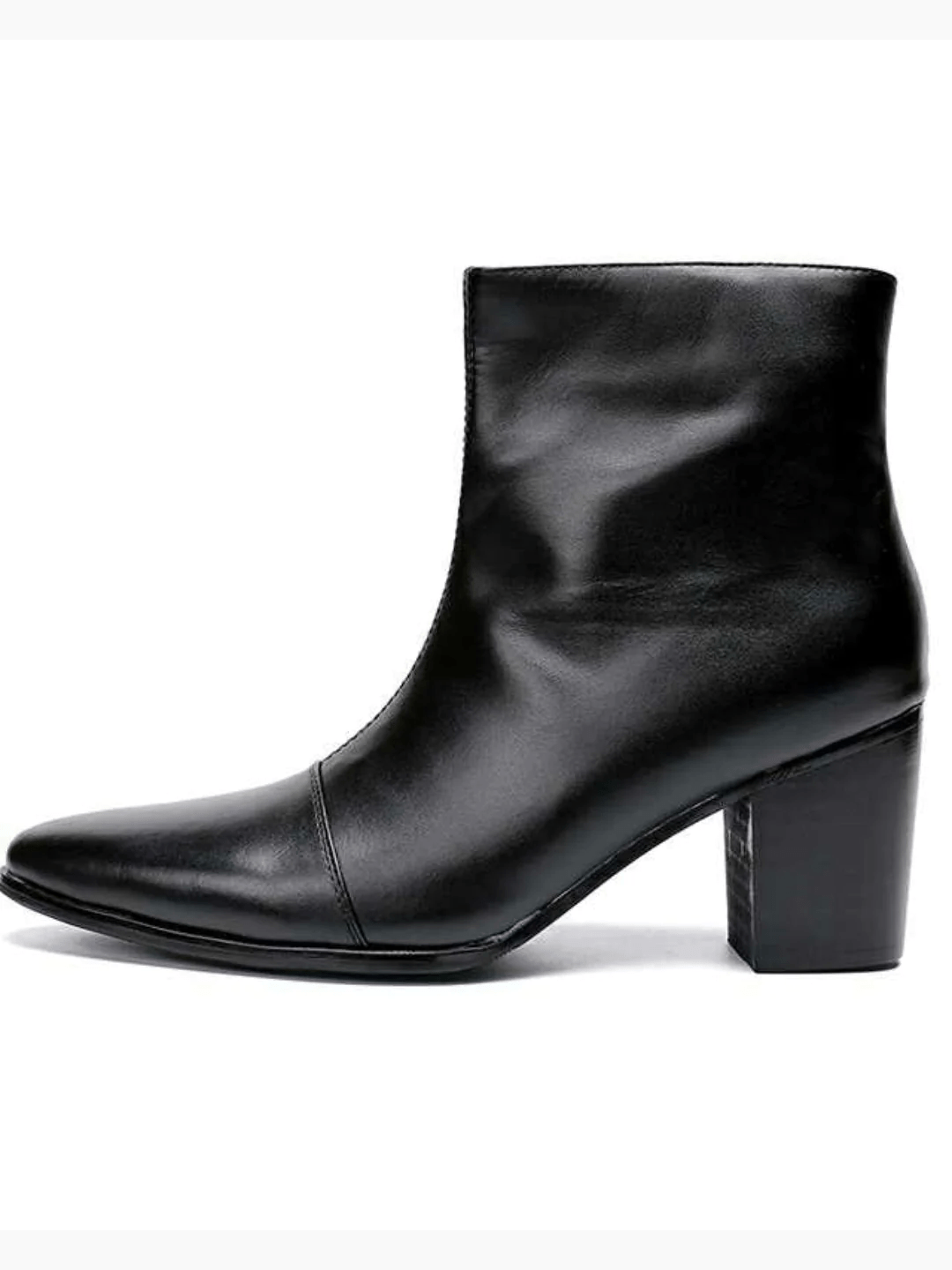 These heel boots feature a long nose and sharp last, giving them a minimalist and sophisticated look.