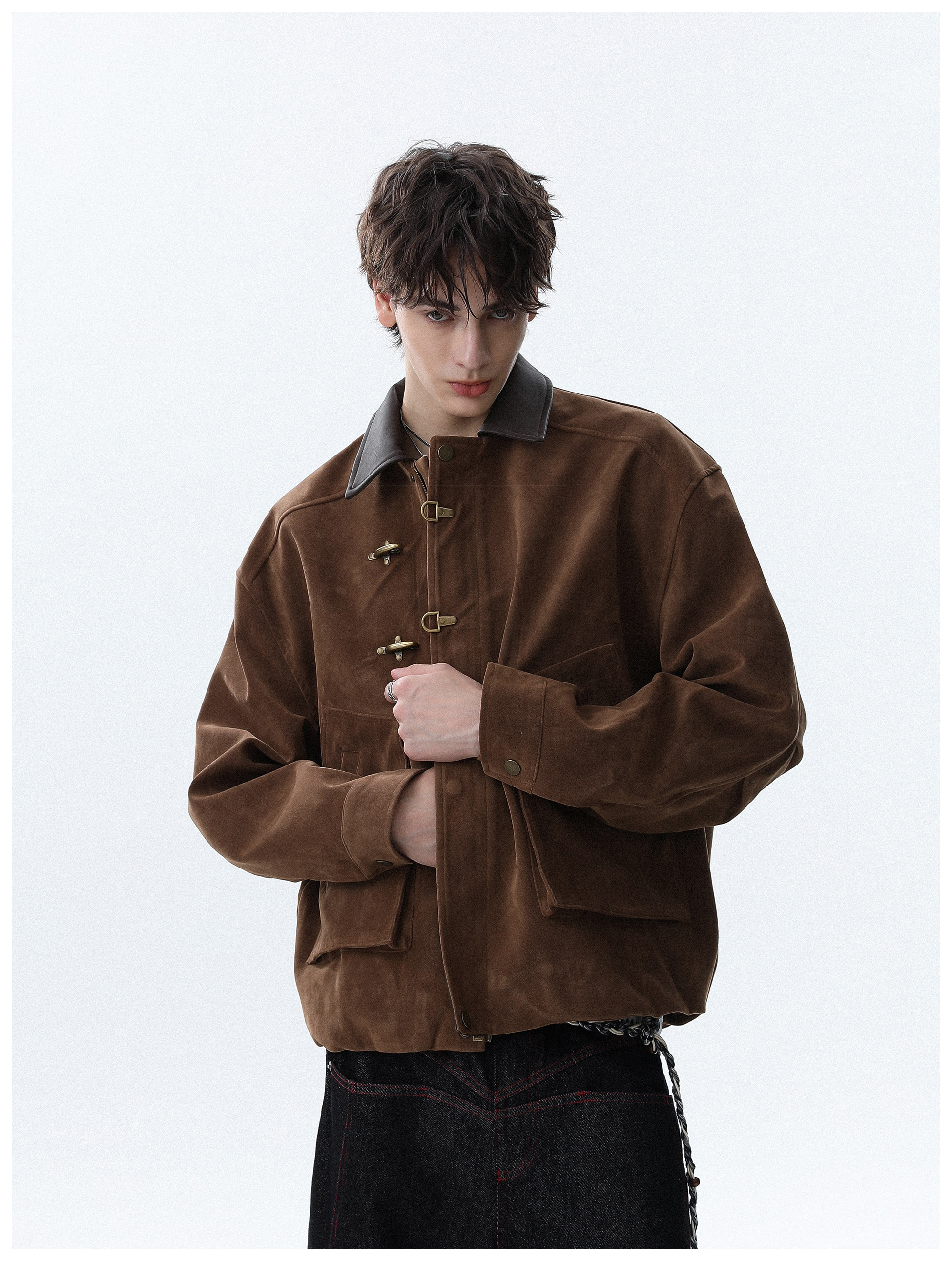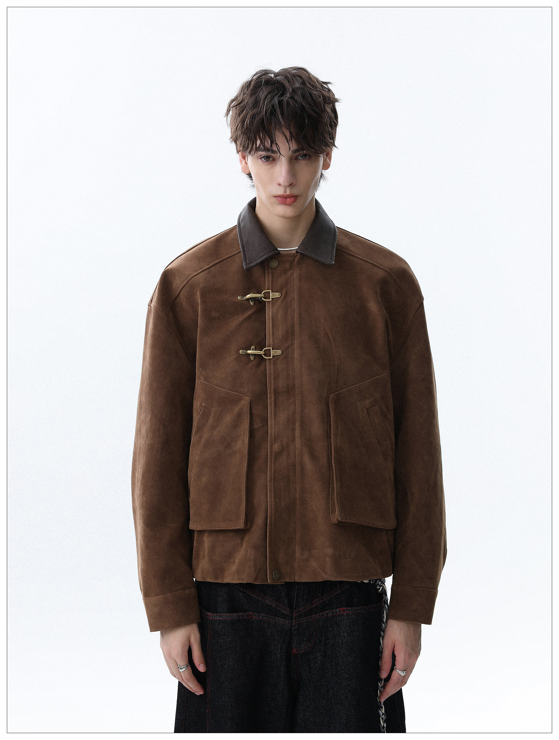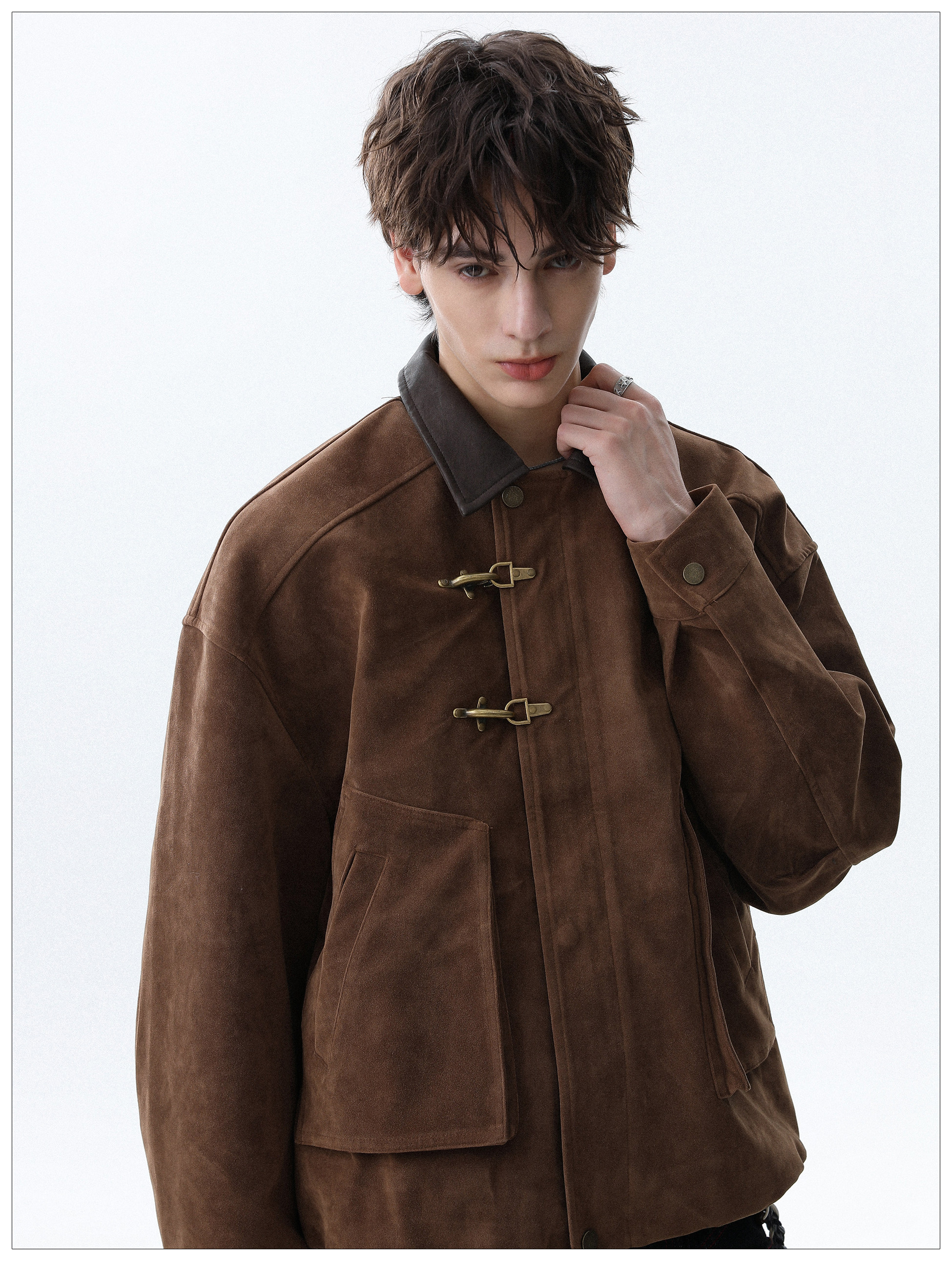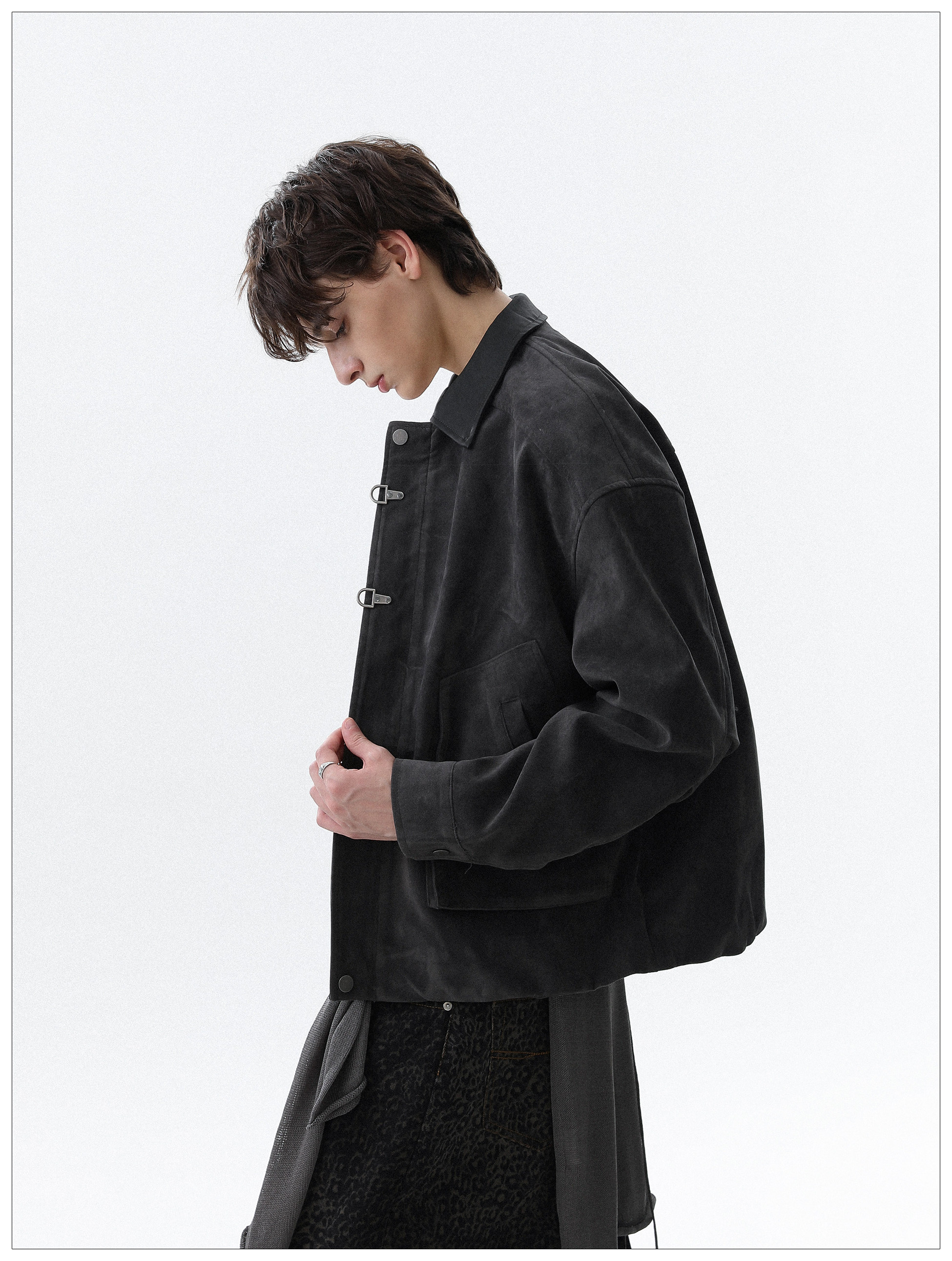 American retro cashmere short lapel autumn coat men's high-end trendy brand ruffian handsome suede jacket