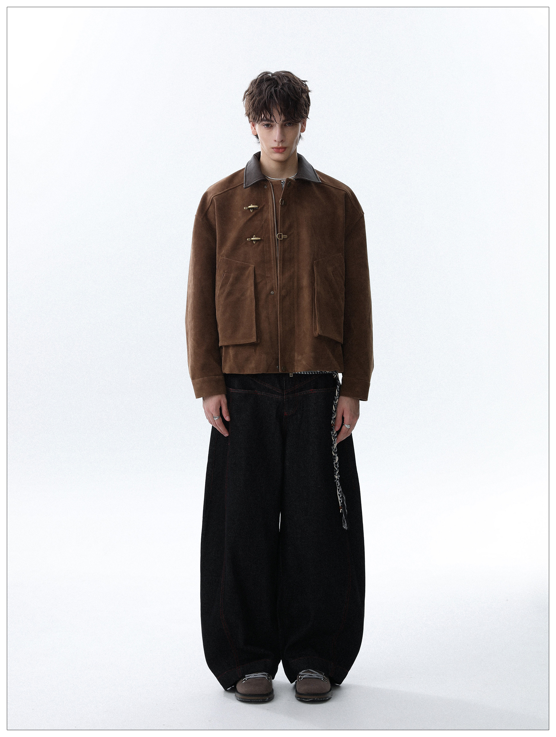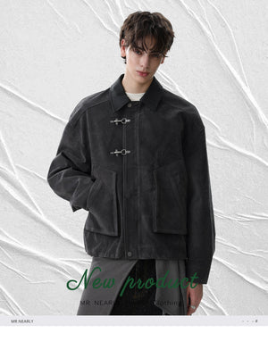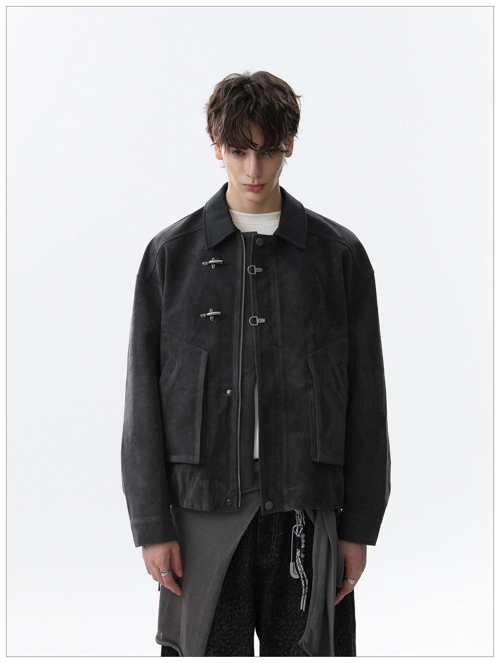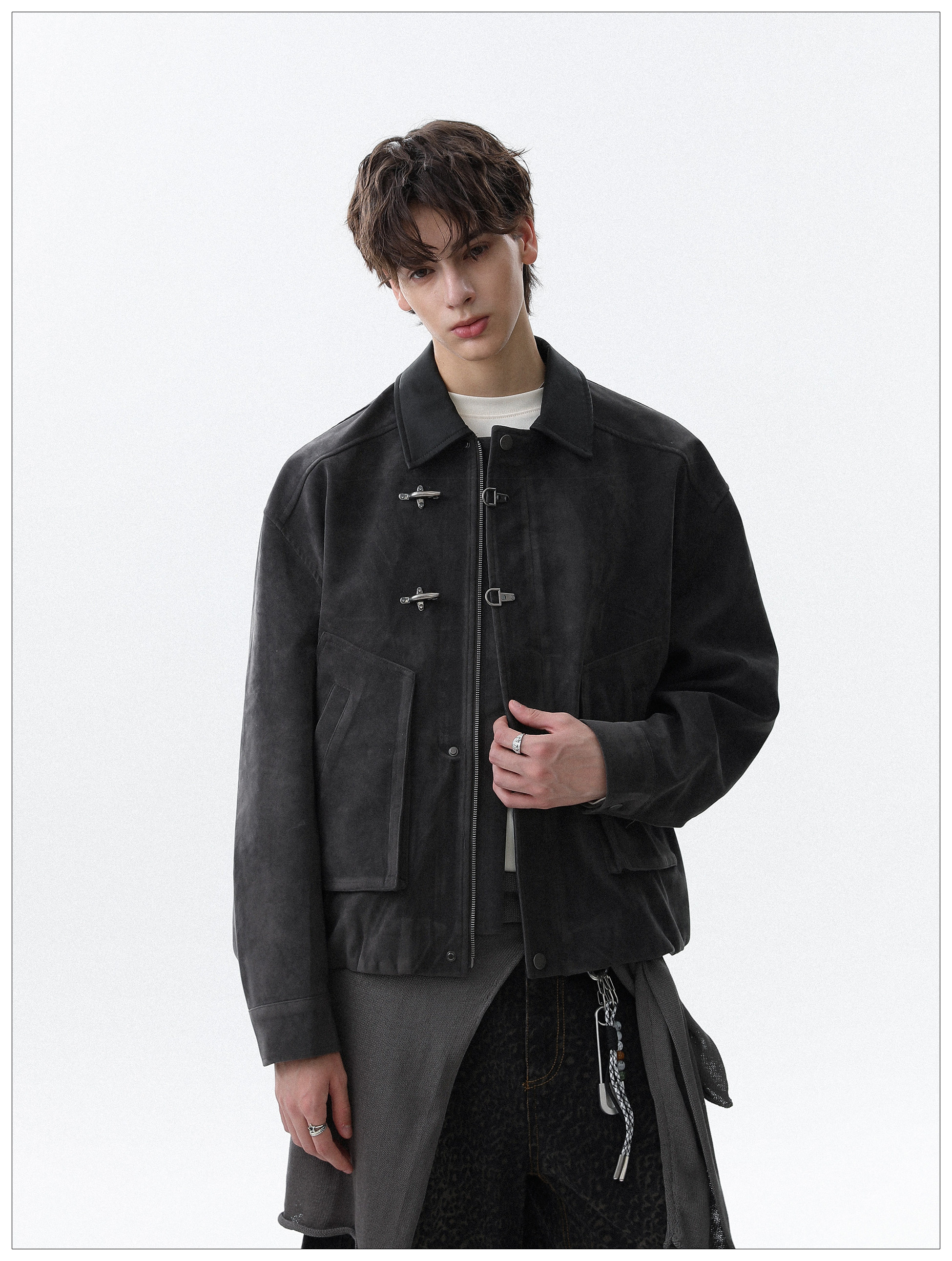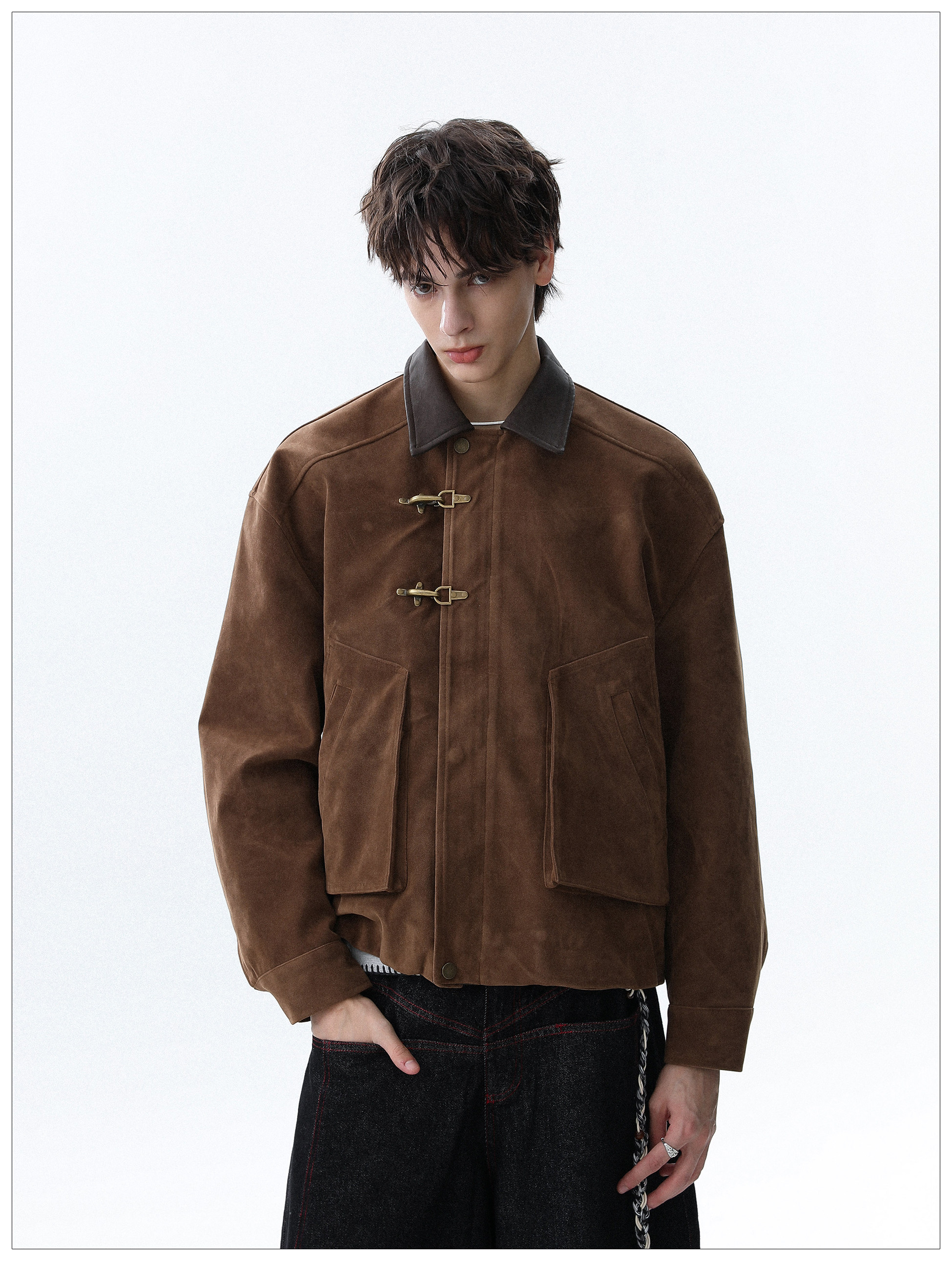 American retro cashmere short lapel autumn coat men's high-end trendy brand ruffian handsome suede jacket