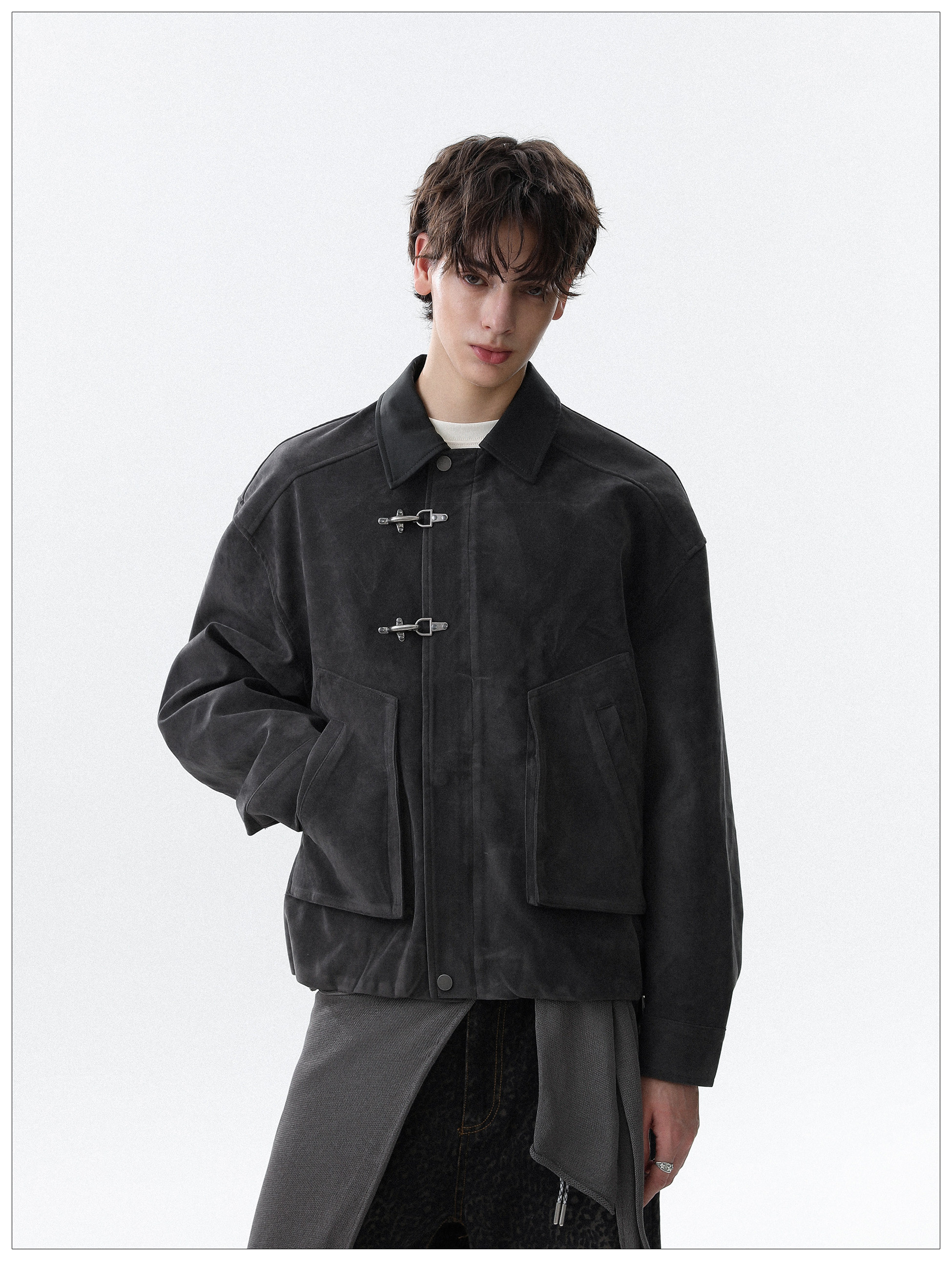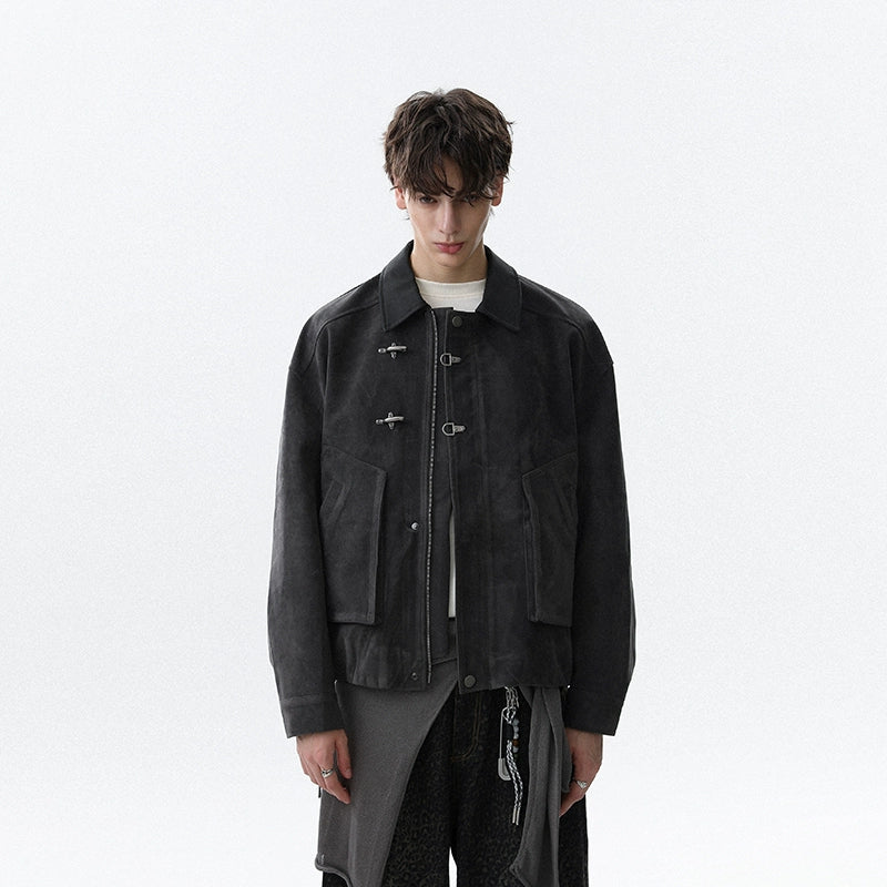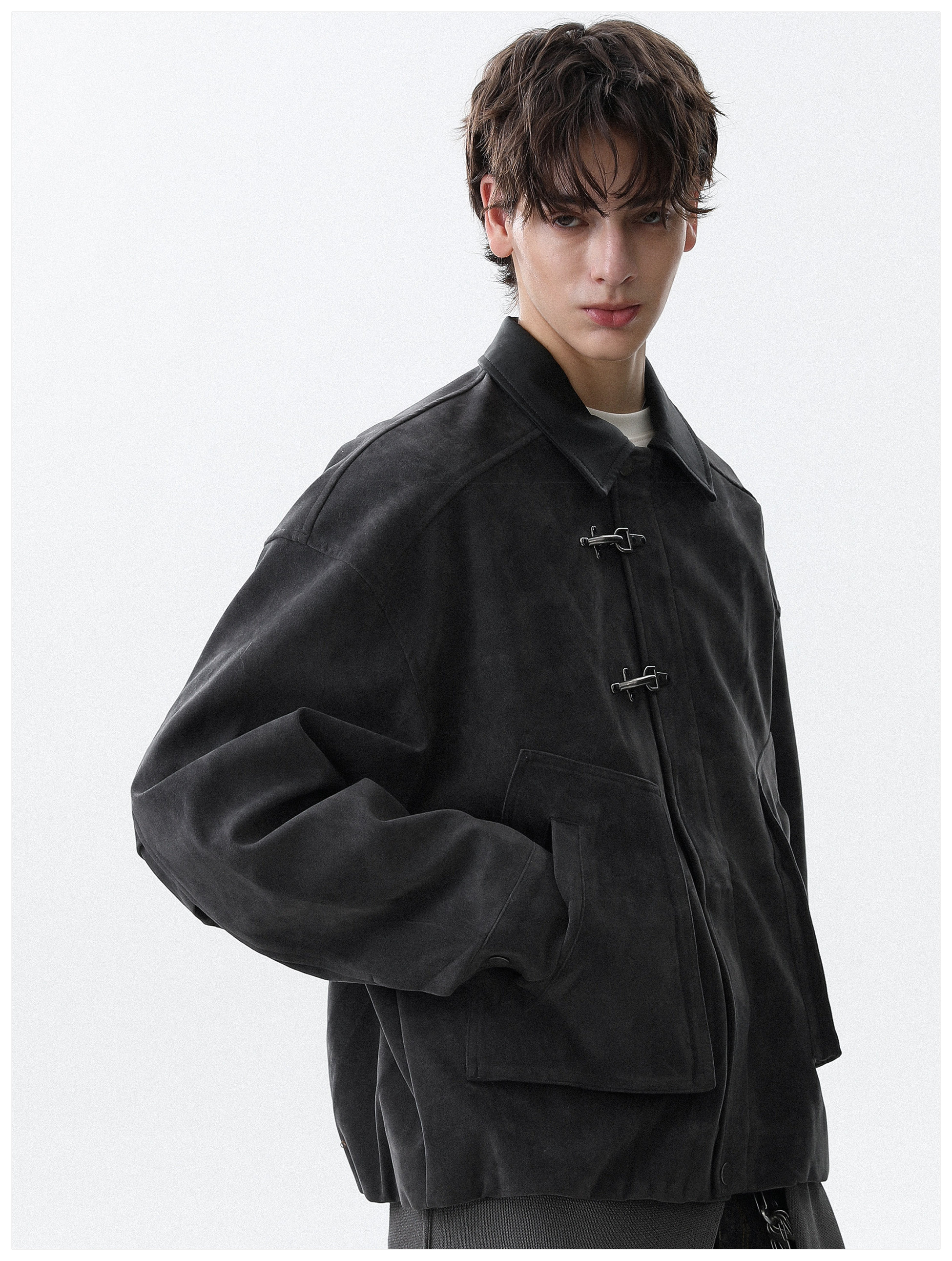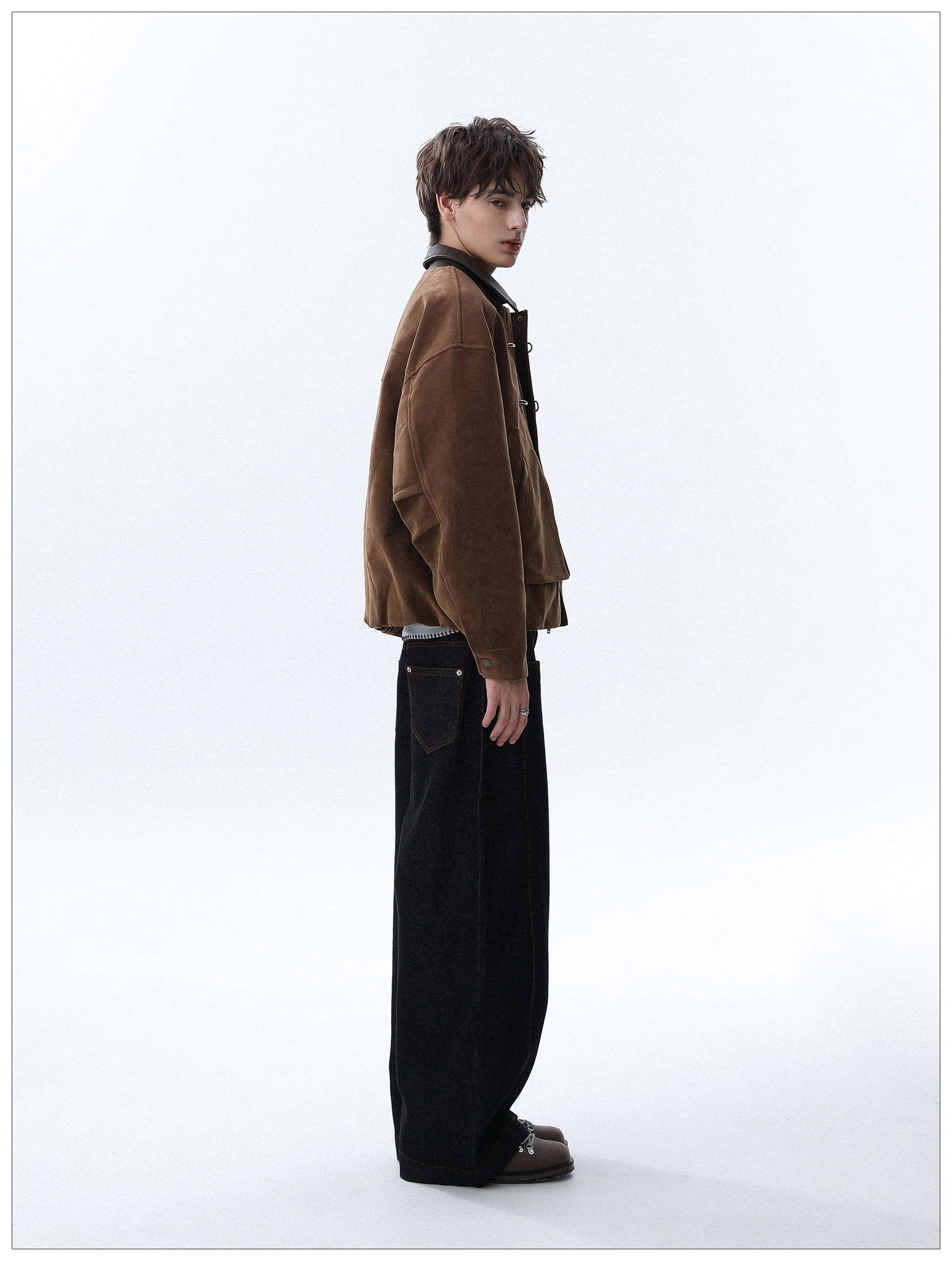 American retro cashmere short lapel autumn coat men's high-end trendy brand ruffian handsome suede jacket