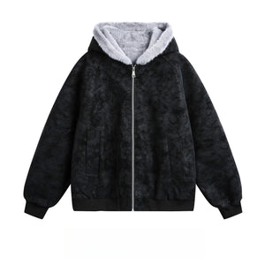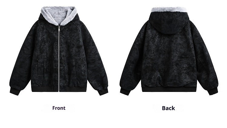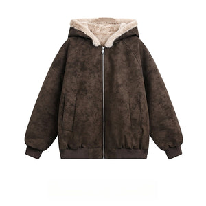 American winter mountain carving thickened hooded cotton-padded clothes men's retro trendy brand couple warm pu leather cotton clothes