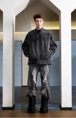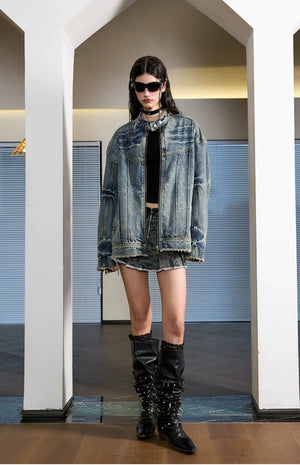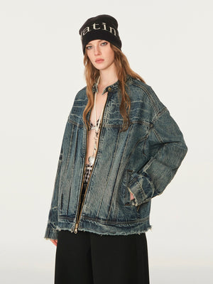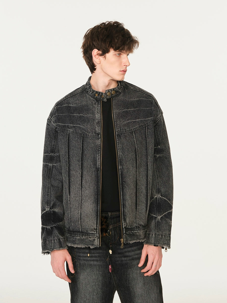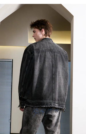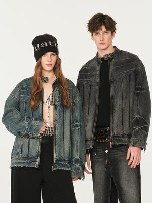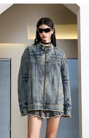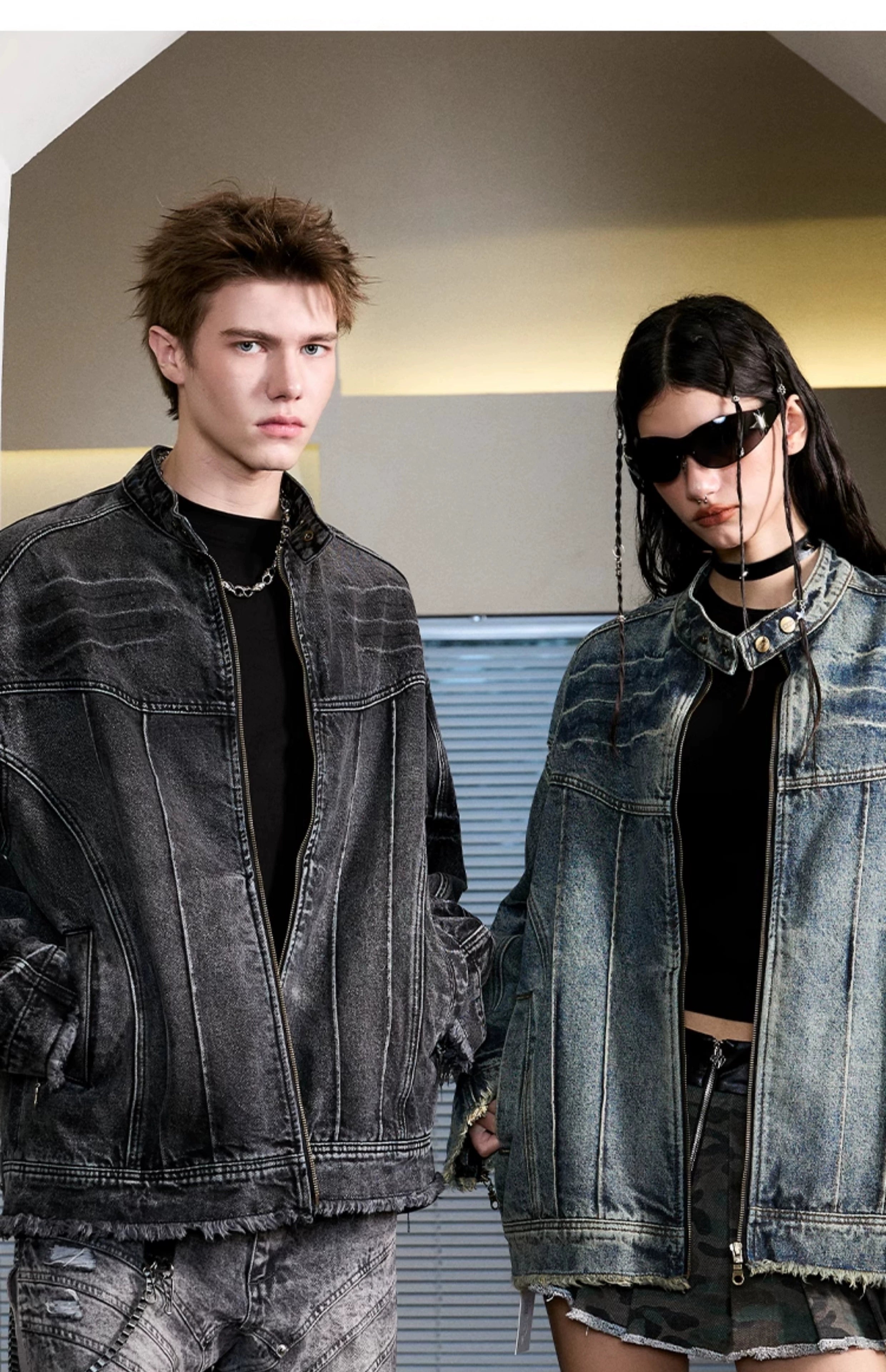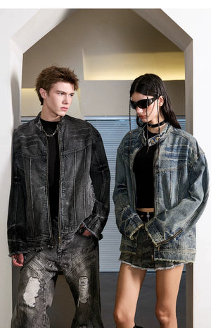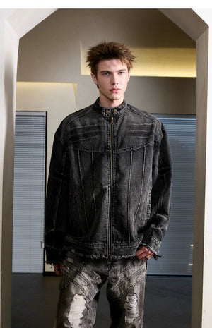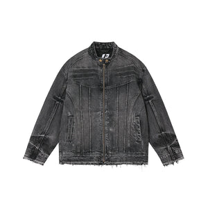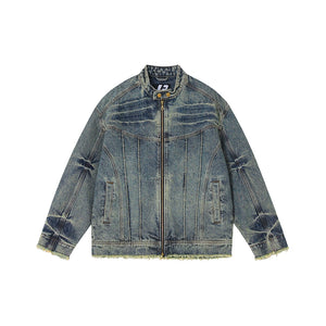 Heavy washed denim jacket American high street stand-up collar jacket SIN0992