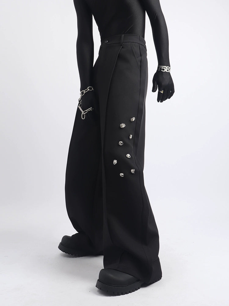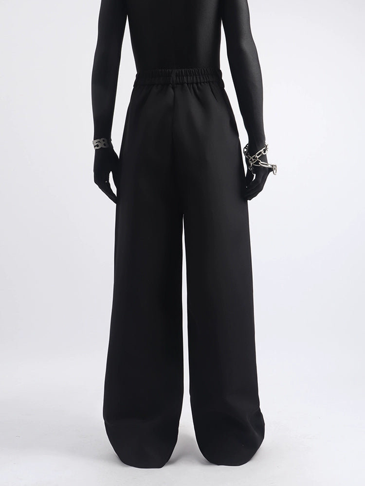 Metal design black wide-leg pants men's niche trend splicing loose and versatile casual trousers
