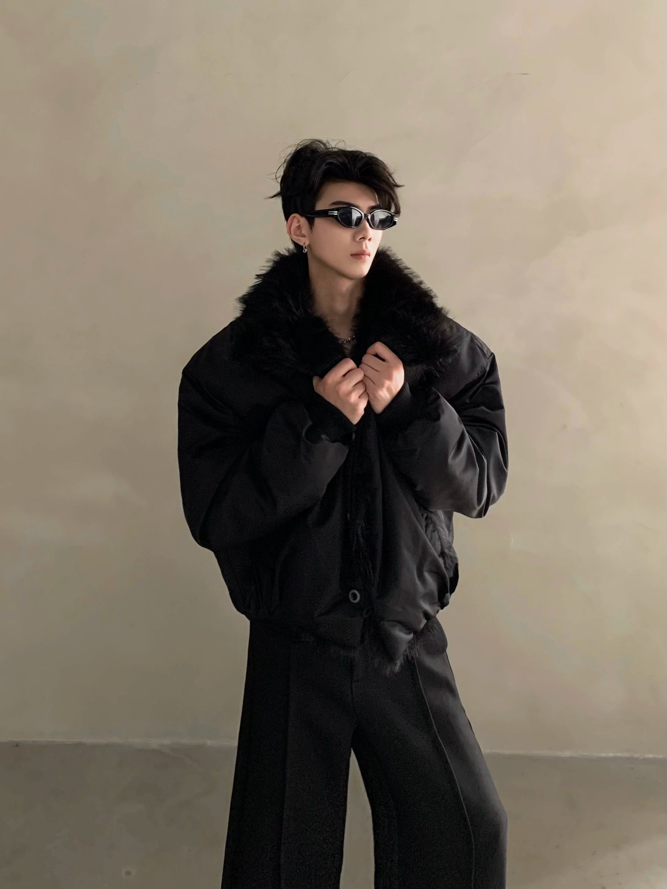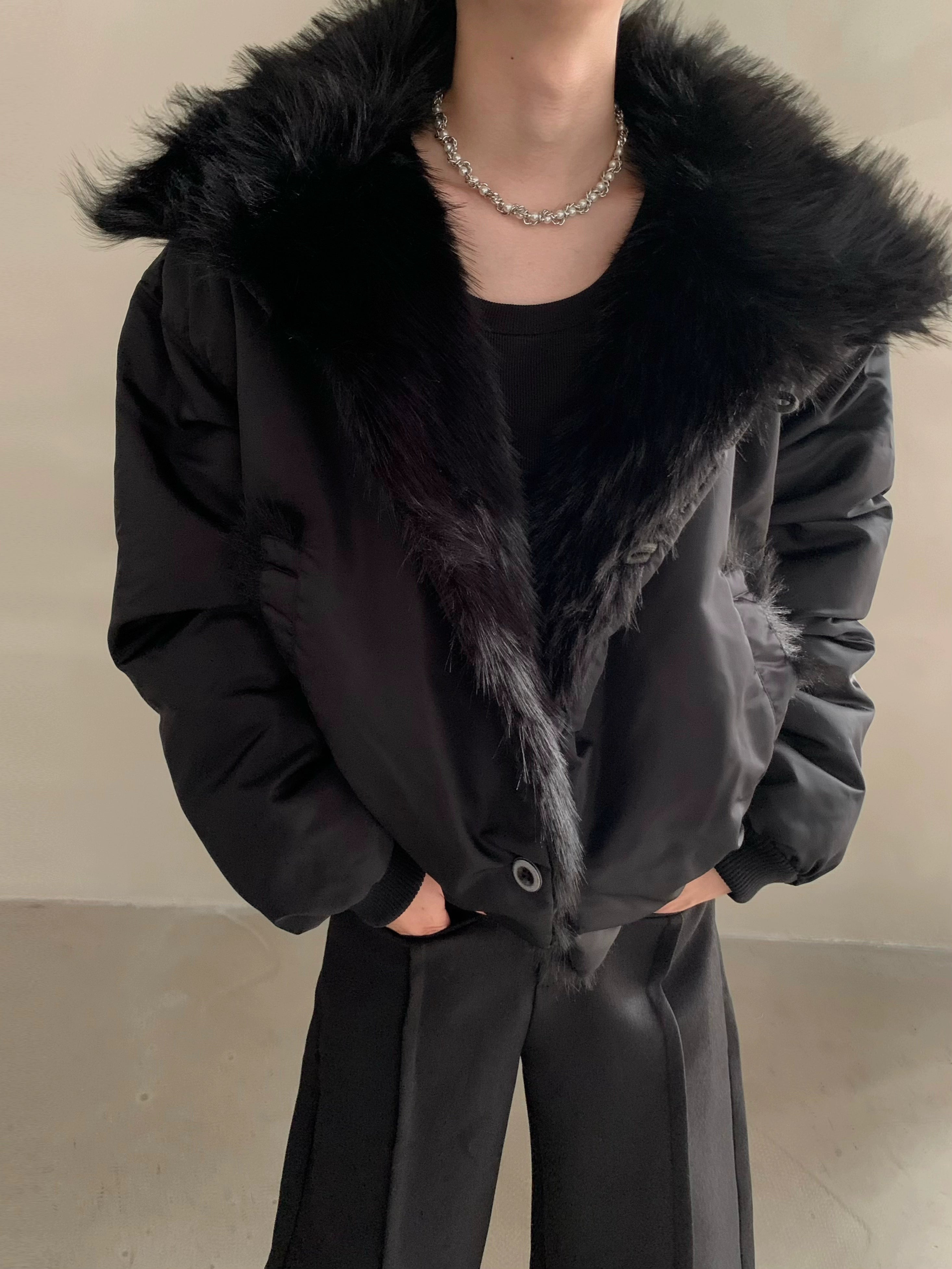 Noble mink hair seat mountain carving black coat men's winter piled thickened large fur collar cotton clothes tide