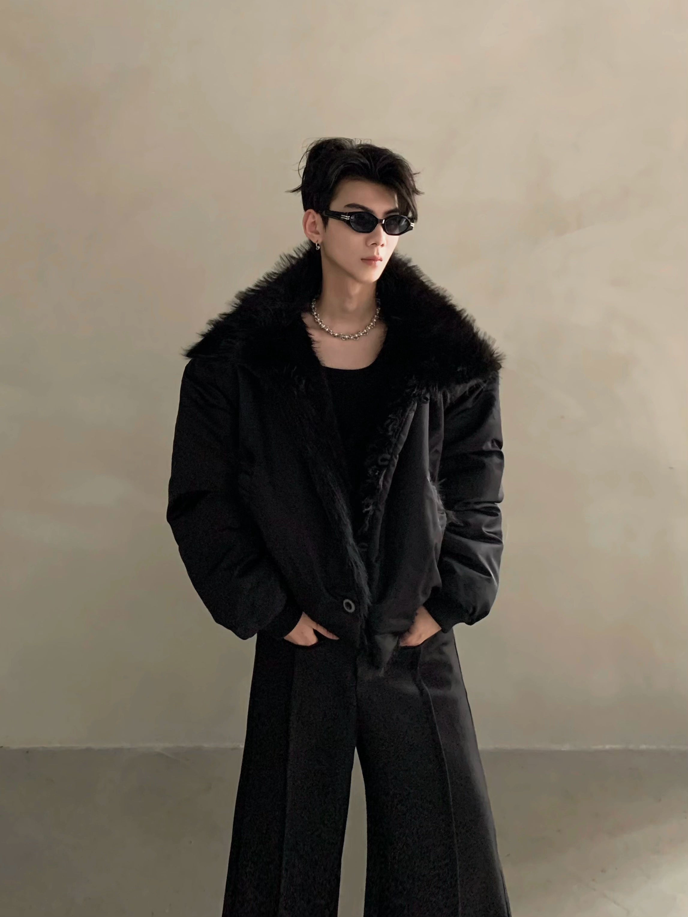 Home Noble mink hair seat mountain carving black coat men's winter piled thickened large fur collar cotton clothes tide