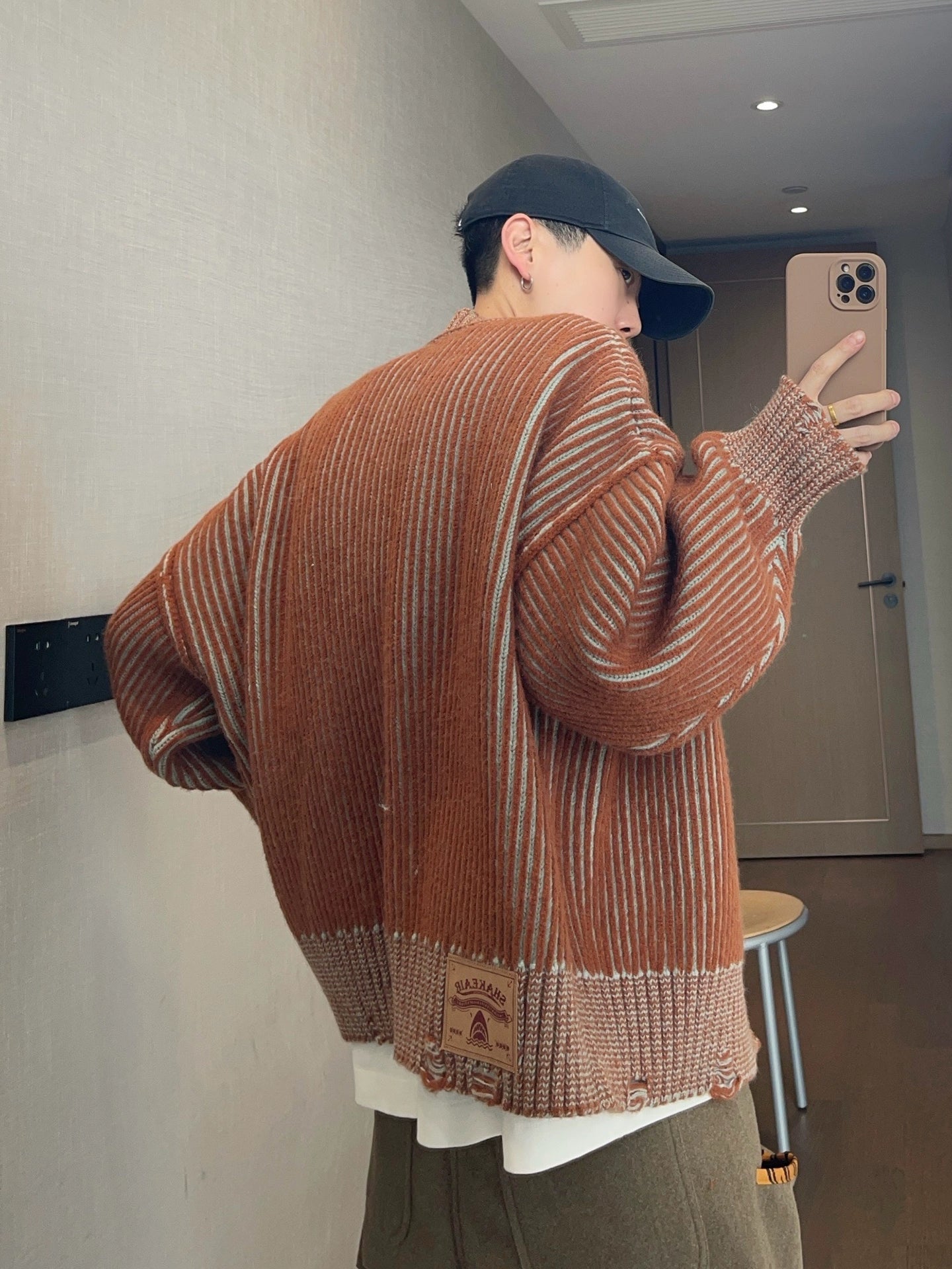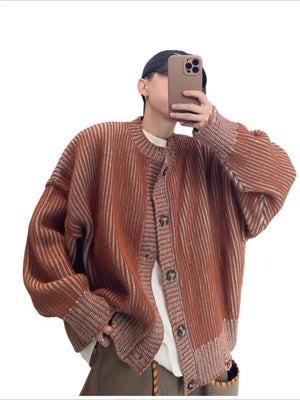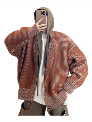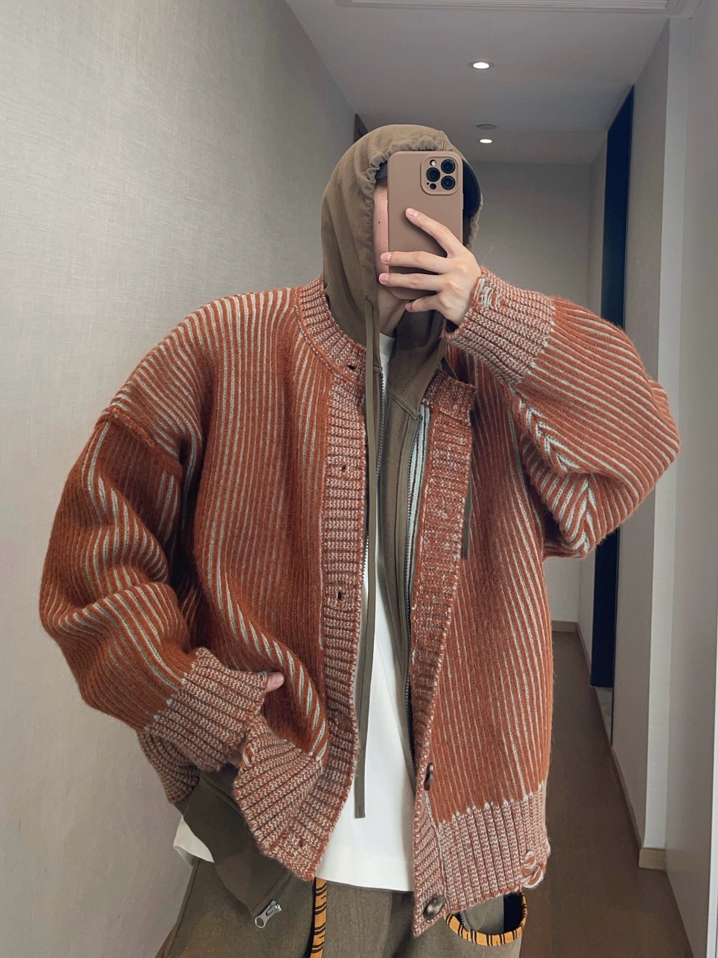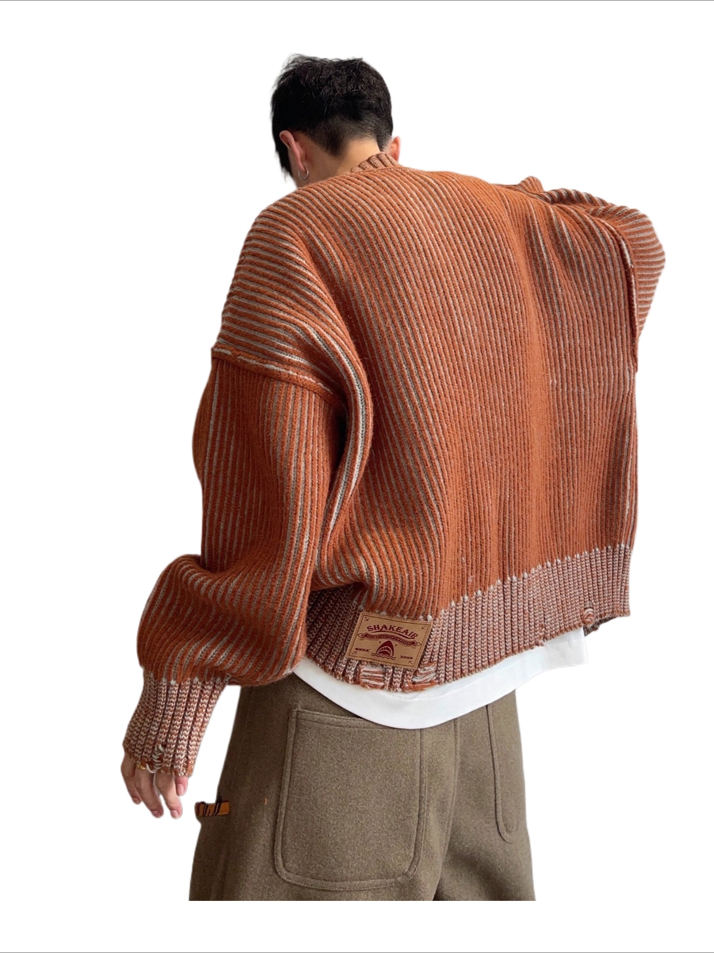 Vintage Heavy Thickened Orange Vertical Striped Sweater Jacket SIN0809
